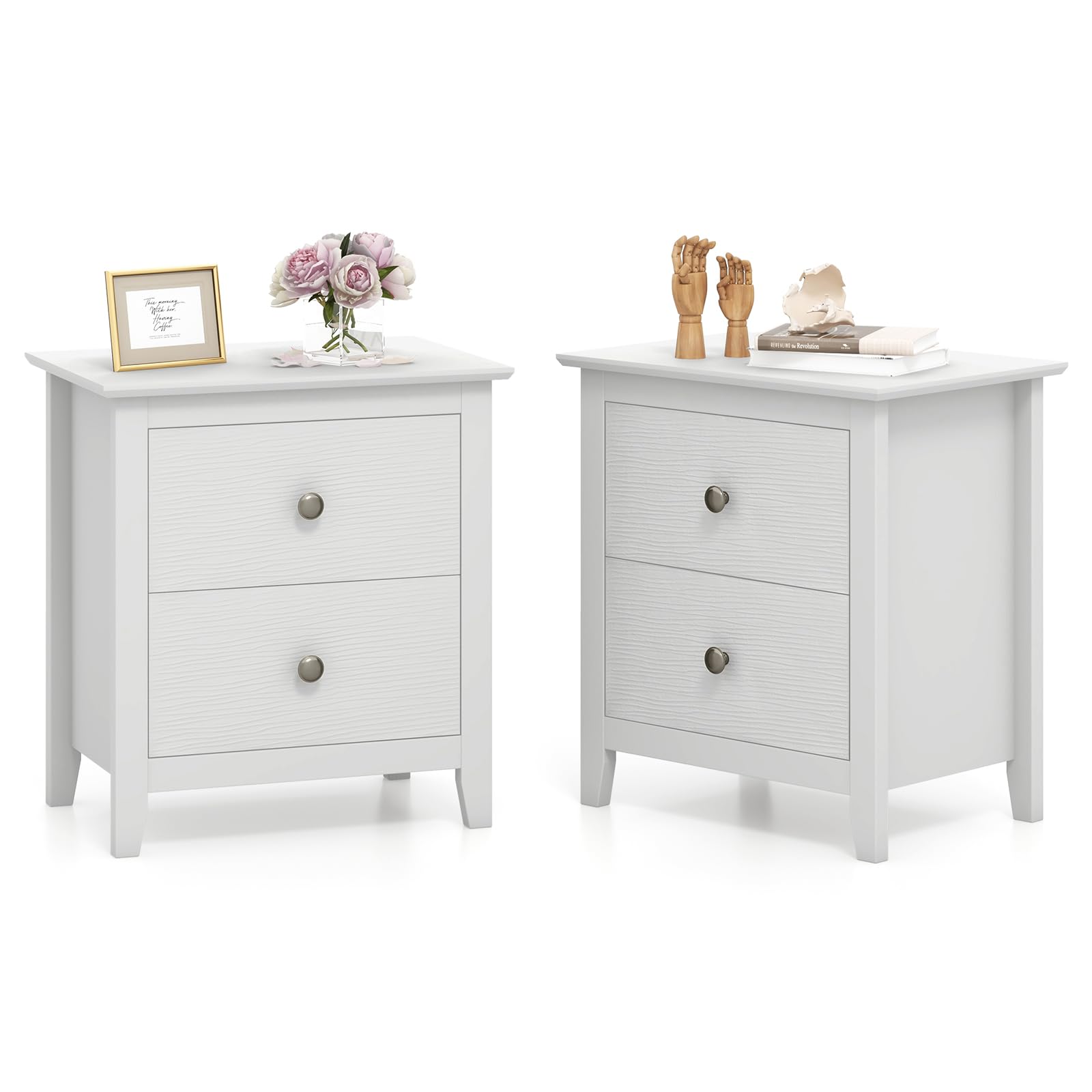 This bedside table features 2 drawers and a wide tabletop, providing ample space to store and display your necessities conveniently. Supported by robust legs, this bedside table stands solid on any floor. The delicate texture complements a wide range of home styles, from contemporary to classic. Whether by your bed or next to your sofa, this side table holds up well under daily use, making it a reliable addition to your furniture collection.