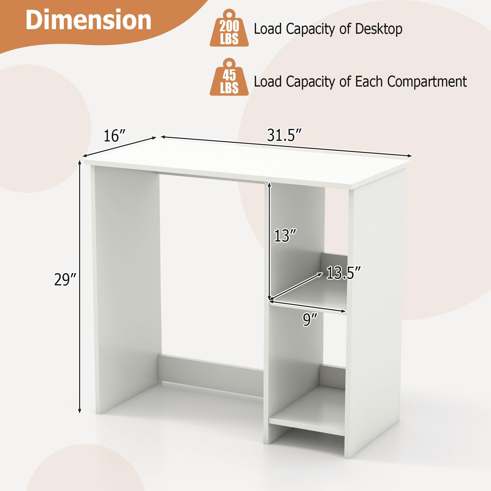 - Ample Work Surface: With a 31.5" desktop, the home office desk offers ample room for your laptop, paperwork, and other essentials. As needed, it is feasible to combine 2 desks to spread out and work comfortably without feeling cramped.