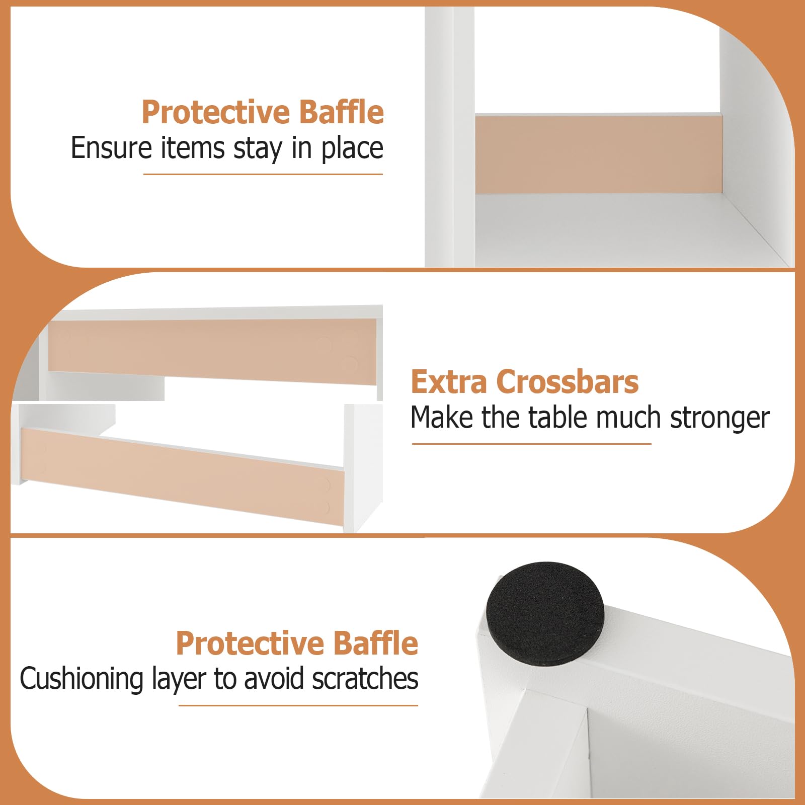 Has with protective foot pads that will act as a cushioning layer to avoid scratches