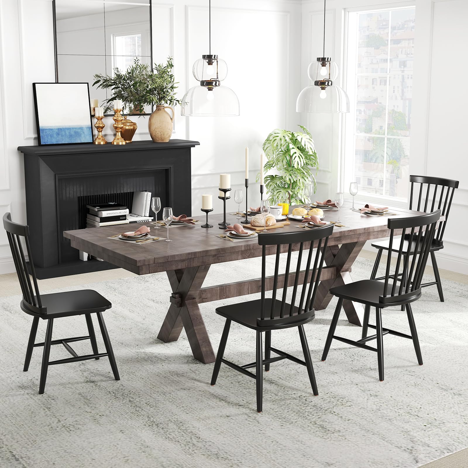 Crafted from solid natural rubber wood, these wooden chairs arrive in pristine condition with no damage or cracks. Designed with a high spindle backrest and wide seat, these chairs offer a comfortable seating experience for enjoying meals. The addition of H-shaped support bars and non-slip foot pads ensures enhanced stability, preventing any wobbling during use. The sturdy frame guarantees each chair can support up to 400 lbs, providing durability and reliability. With a simple yet stylish design, these slat back dining chairs make a charming addition to your dining room or kitchen, effortlessly blending in with your existing decor.