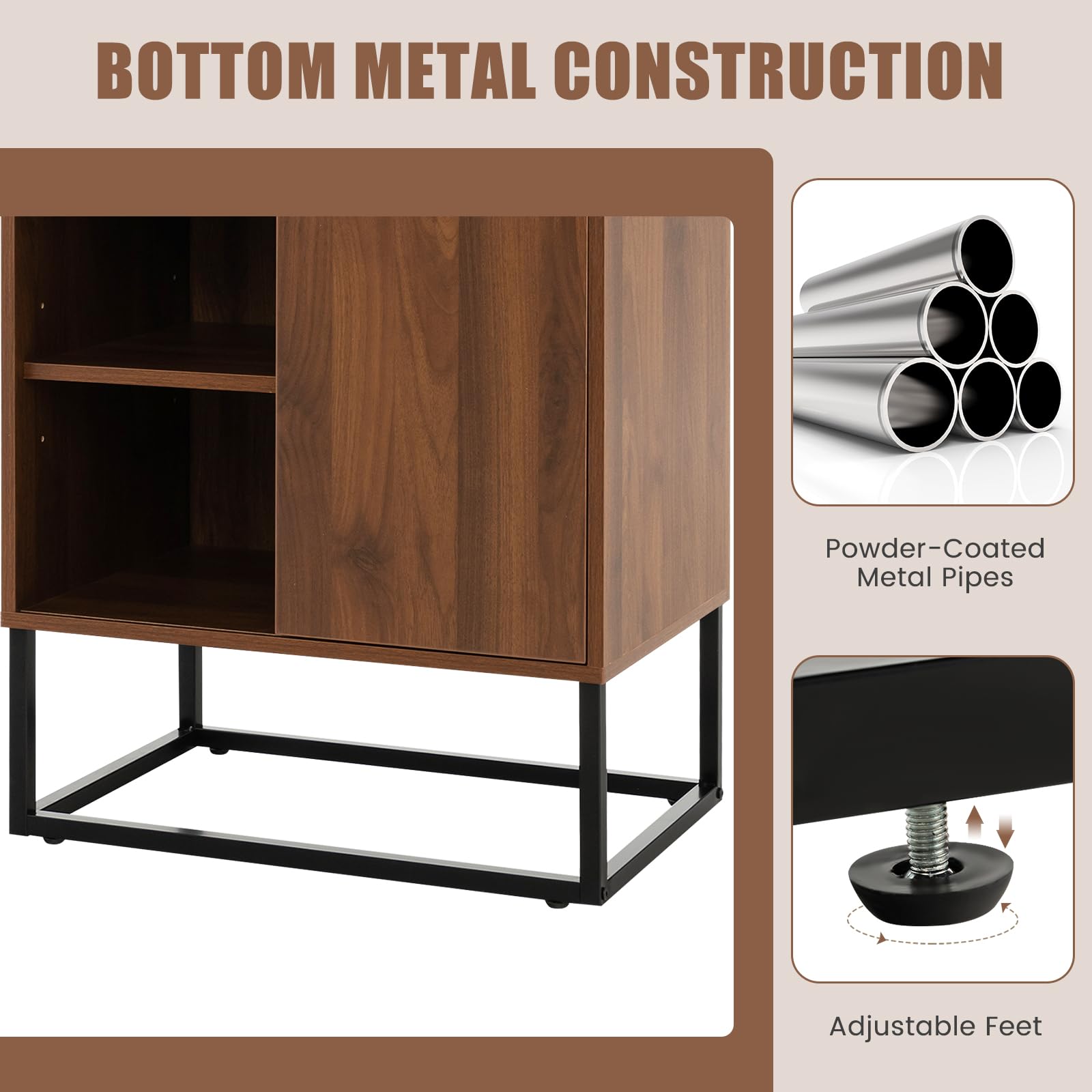 - [Sturdy Metal Construction]: Made of powder-coated metal pipes, the bottom metal frame guarantees excellent durability and superior sturdiness. The anti-toppling device helps to add more stability and prevent wobbling. Plus, adjustable feet keep it steady on the ground.