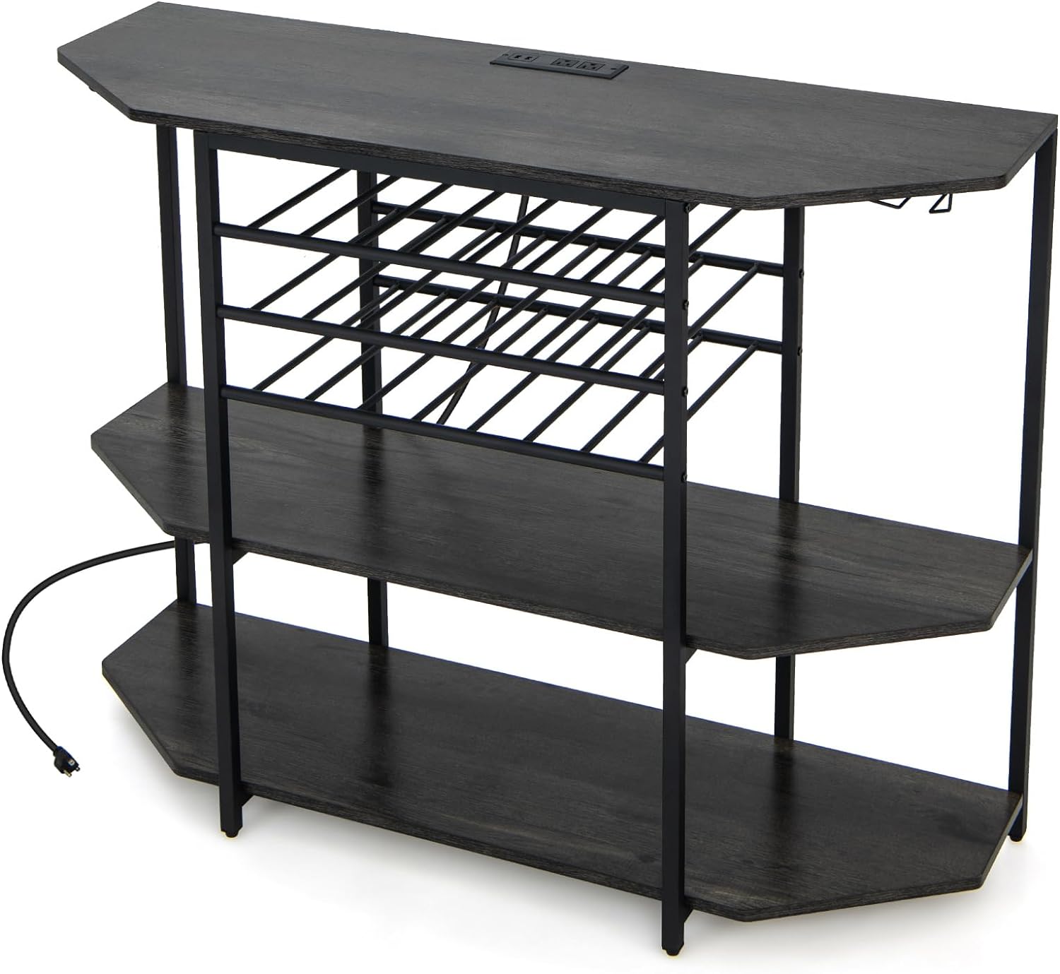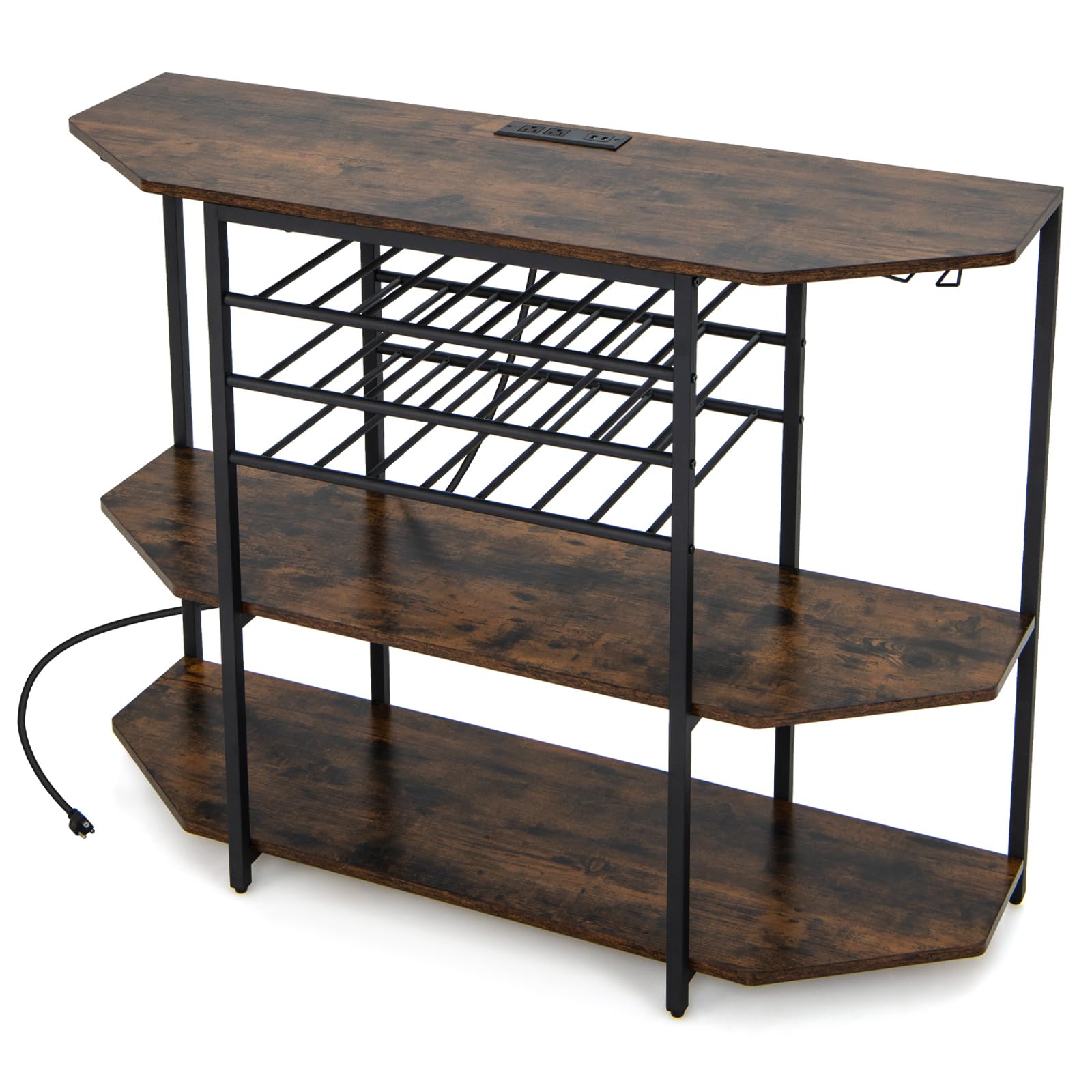 Giantex Wine Bar Cabinet with Power Outlet, Mini Coffee Bar Stand Table with 21 Bottle Wine Rack & Glass Holders