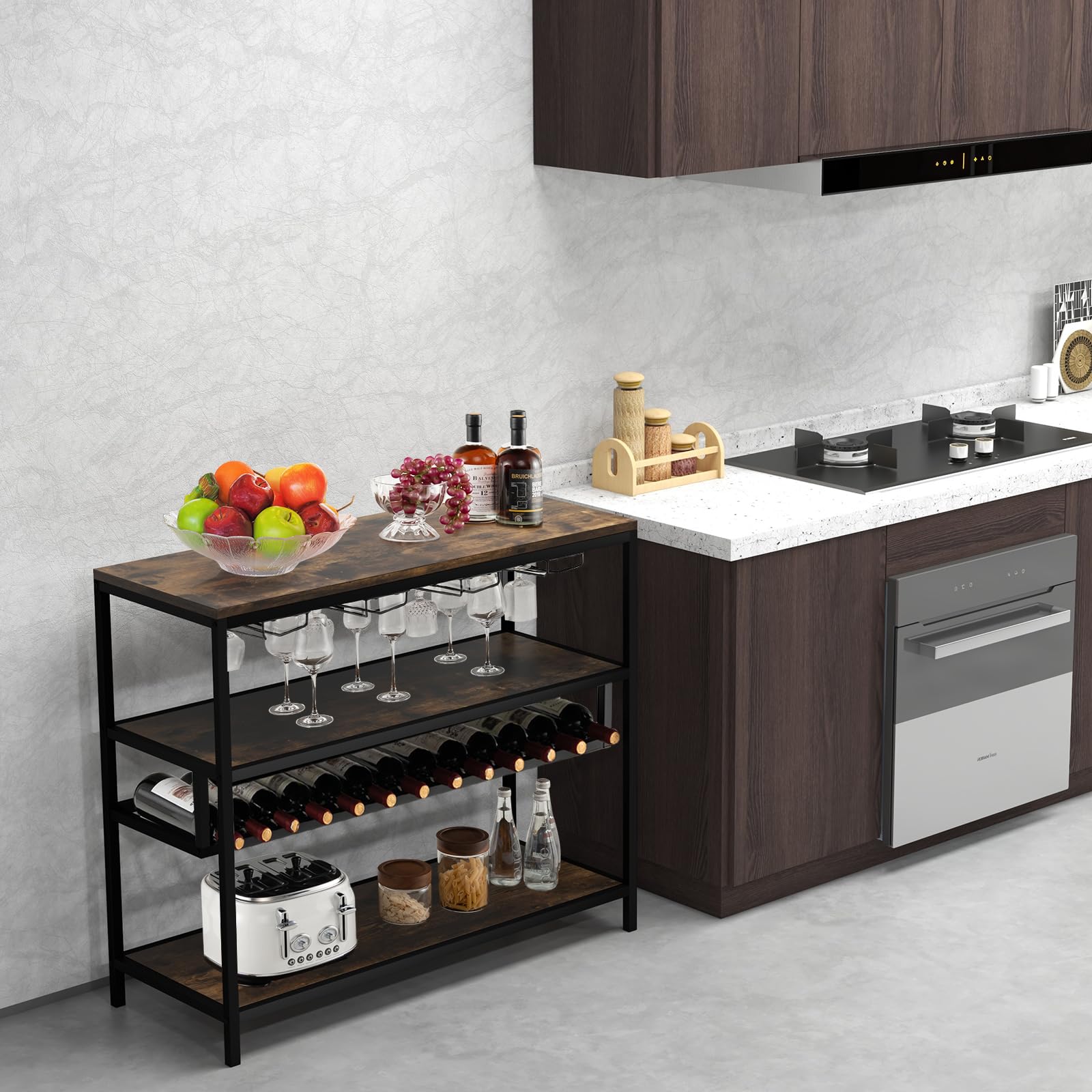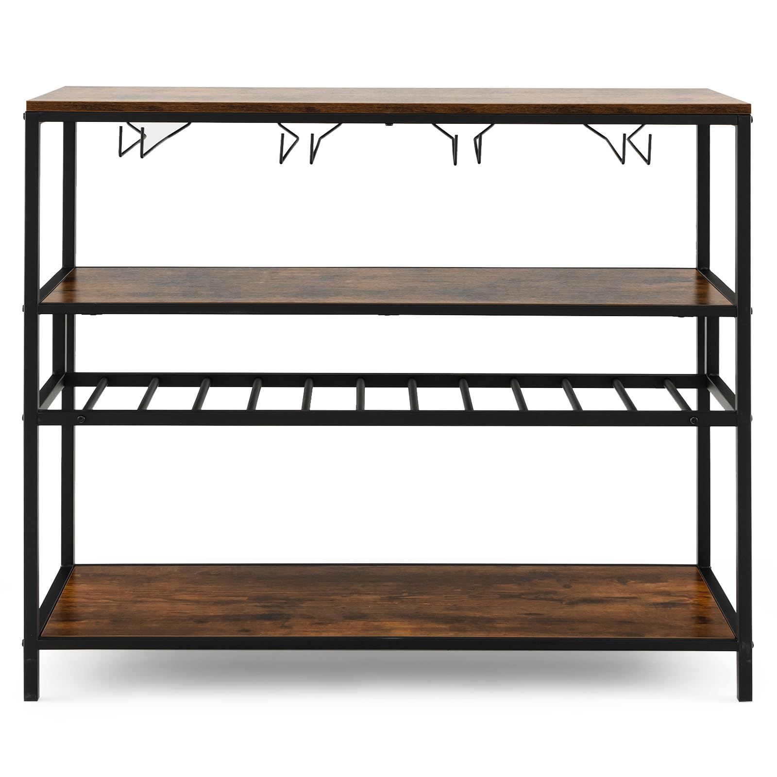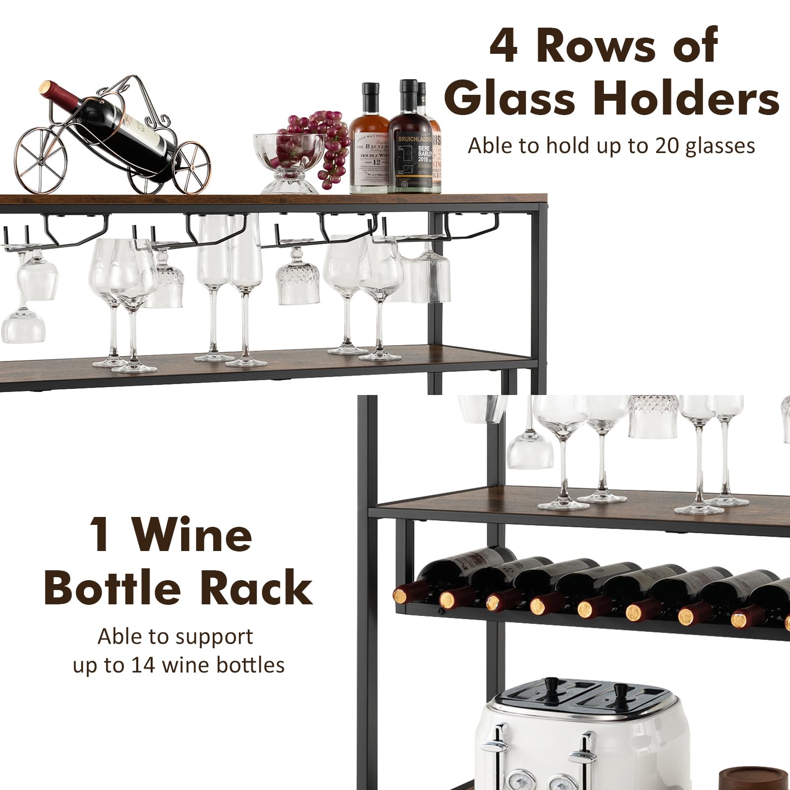 - [ Well Organize Your Wine ]: Our wine rack table is equipped with 1 wine bottle rack and 4 rows of glass holders to place 13 bottles of wines and 20 glasses. 3 storage shelves offer ample storage space. Plus, the open design allows you to easily reach for what you need.