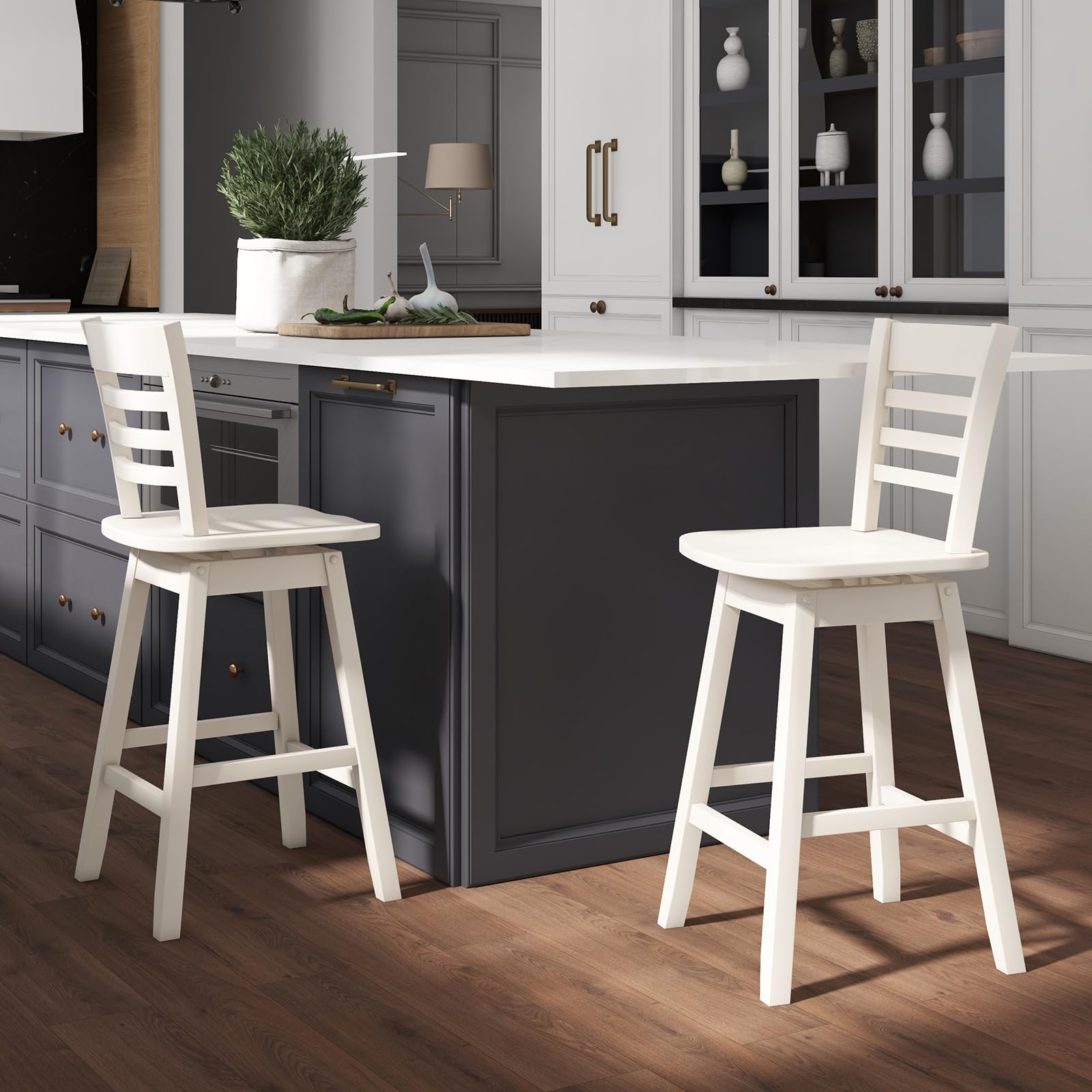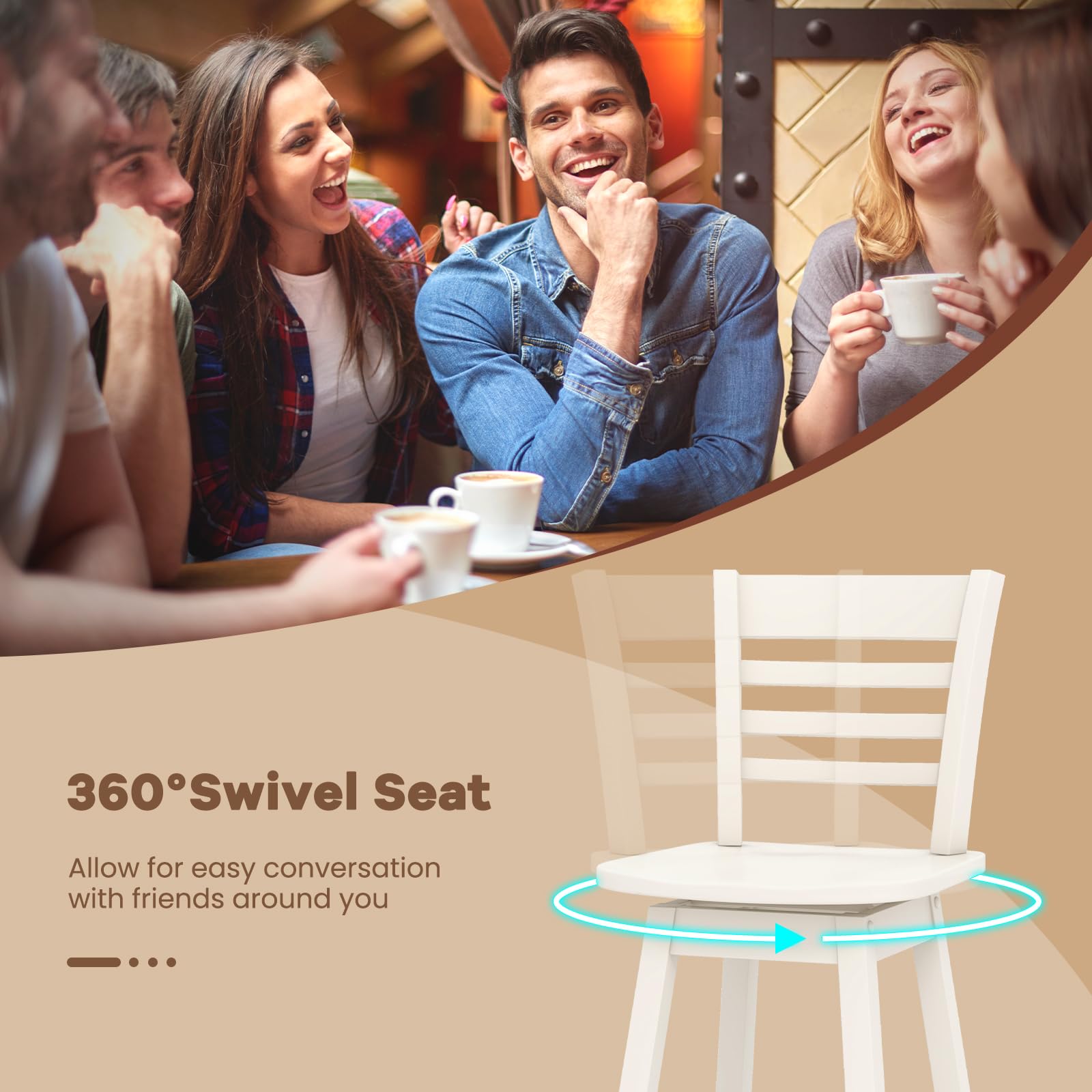 Giantex Wood Bar Stools, Swivel Counter Height Bar Stools with Slatted Hollow Back & Ergonomic Contoured Seat