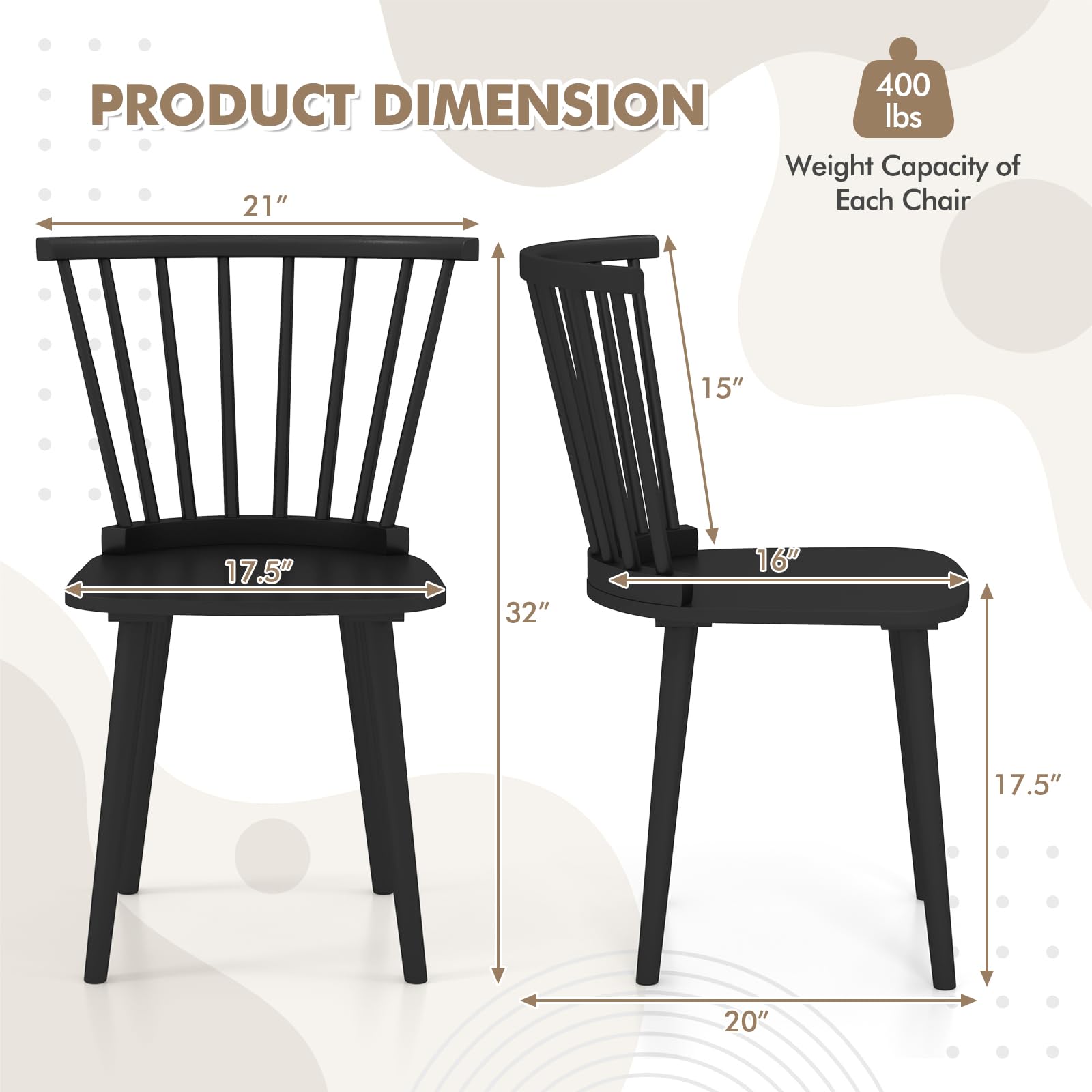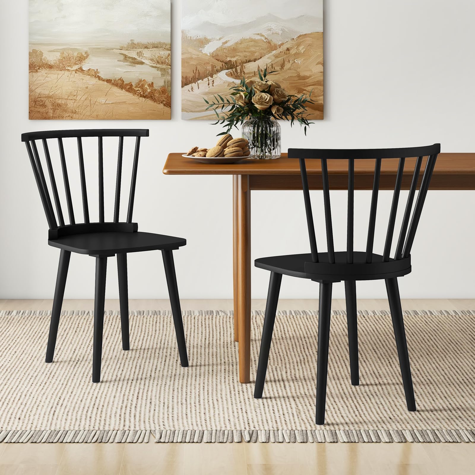 - [Sturdy Rubber Wood Frame]: The Windsor dining chair features a natural solid rubber wood frame, ensuring excellent sturdiness and a large weight capacity of 400 lbs per chair. Resistant to scratches and dents, this solid wood chair is built to last.