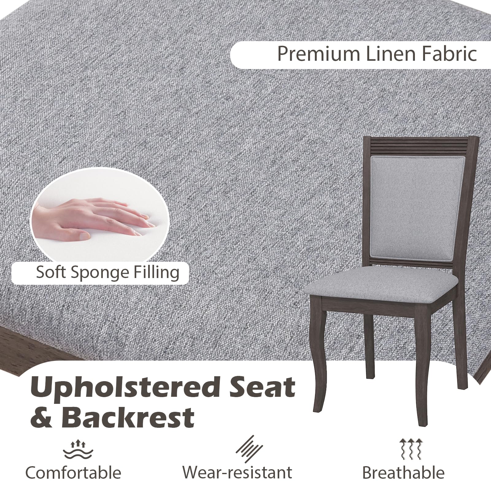 Featuring a high slanted backrest that offers optimal support for your body, the kitchen chairs will alleviate the fatigue during long meals. Also, the spacious seat provides ample room for a relaxed sitting experience. The upholstered seat & backrest are covered with linen fabric, ensuring the antique dinette chair looks great for years to come. The soft sponge-filling ensures a plush seating experience, perfect for enjoying hearty meals or engaging in meaningful conversations. The dining chair set of 2 is made of rubber wood frame, which features deformation-resistance and high sturdiness. Additionally, the unique curved legs combines stable & exquisite design, providing stability and adding a touch of elegance to your space, creating an inviting atmosphere for your family and guests to enjoy.