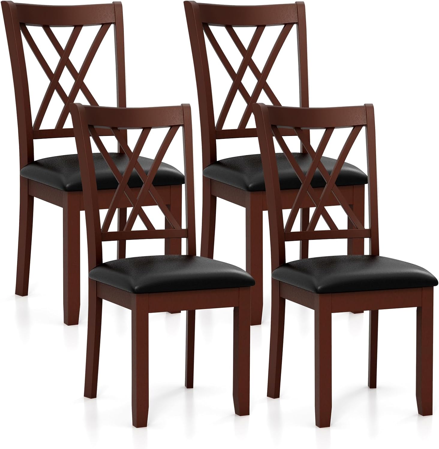 - More Vintage Ambiance: When its black seat meets the brown wooden frame, each dining chair displays a vintage style. Moreover, it features double X-shaped frames, which can work as delicate decorations to capture more attention.