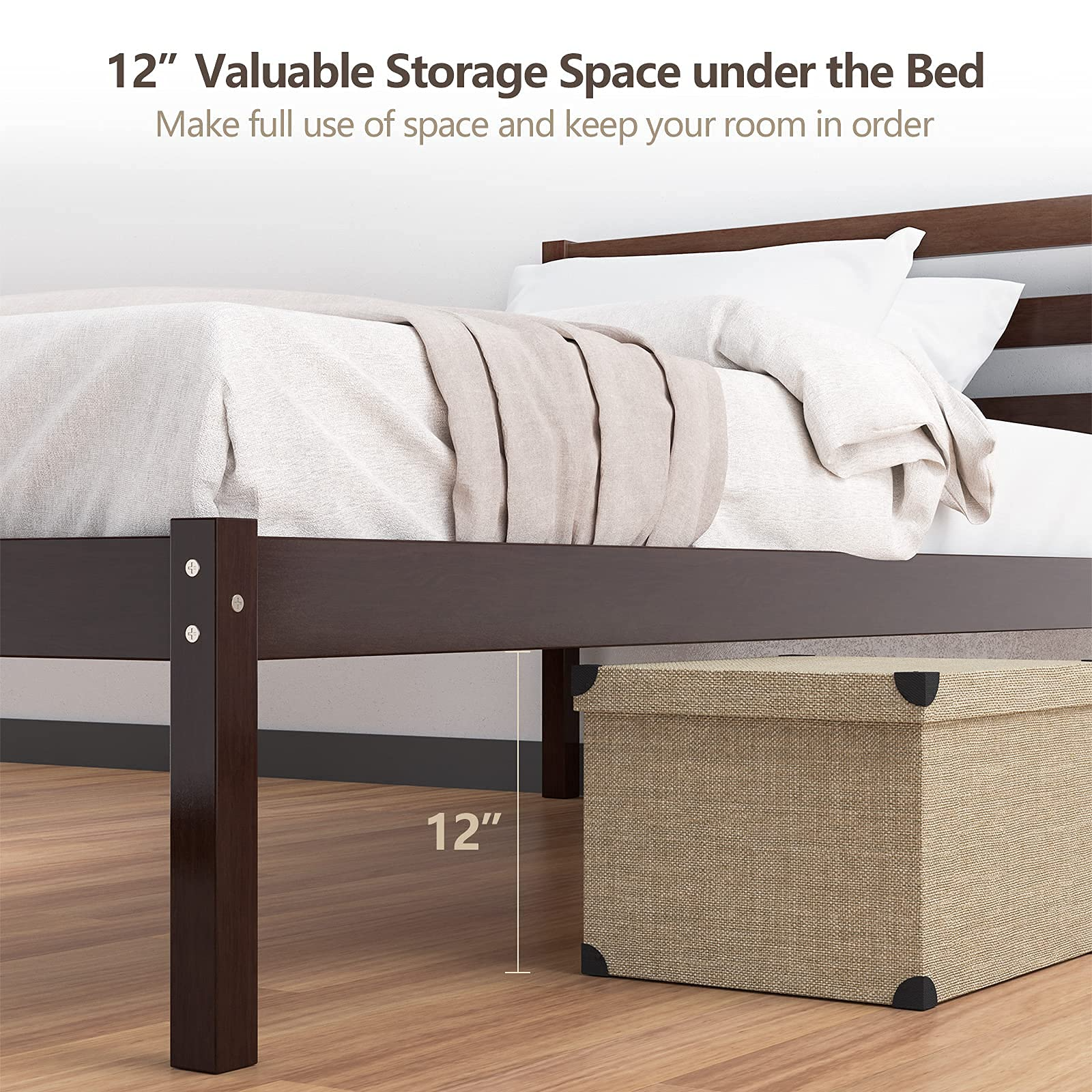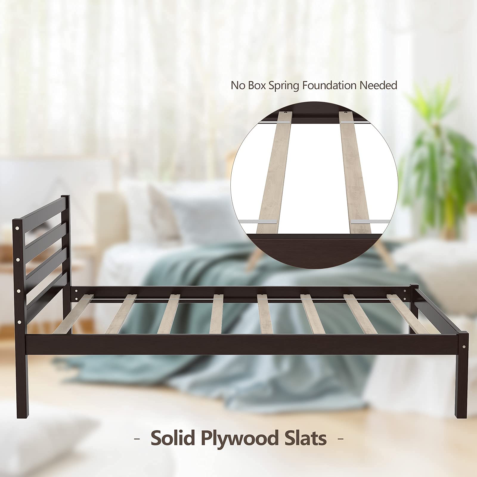 Have your found a satisfactory bed frame? Our twin size bed is your perfect choice that combines reliable quality and delicate craftsmanship. Made of solid wood, the bed base features outstanding toughness and incredible durability for long service time. The extra middle support legs improve the stability of the whole frame. The headboard provides you with pleasant using experience whether against or lying down on it. The bottom of bed is high enough for you to store items and creates a tidy room. The modern design and elegant appearance make it suitable for various room styles, which is a good choice for you to place it in the bedroom, apartment and hotel.