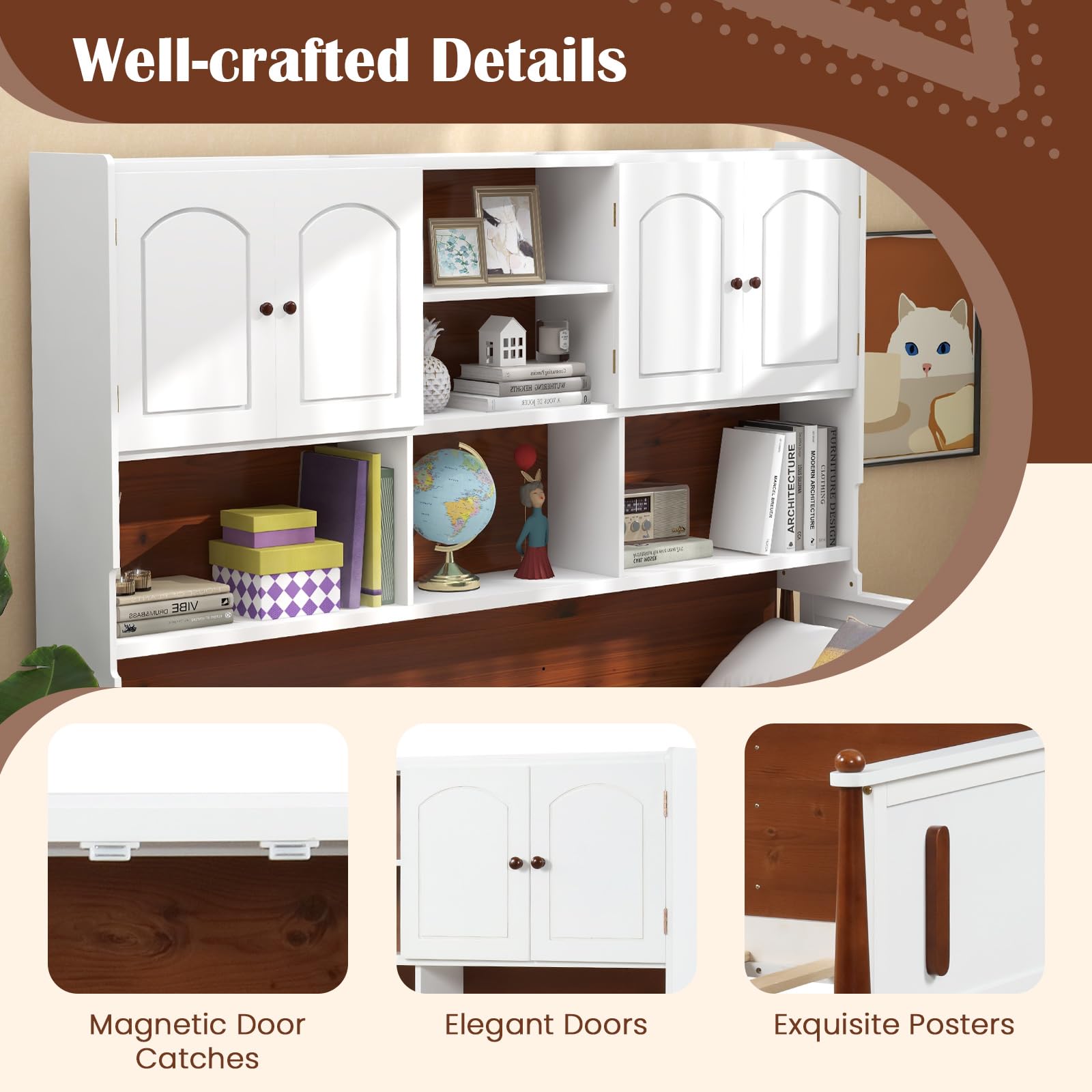 - Practical Storage Bookcase: With its spacious 5 open shelves and 2 double-door cabinets, the bookcase of this daybed with storage provides ample storage options for bedroom essentials, like clocks. Say goodbye to clutter and enjoy an organized bedroom.