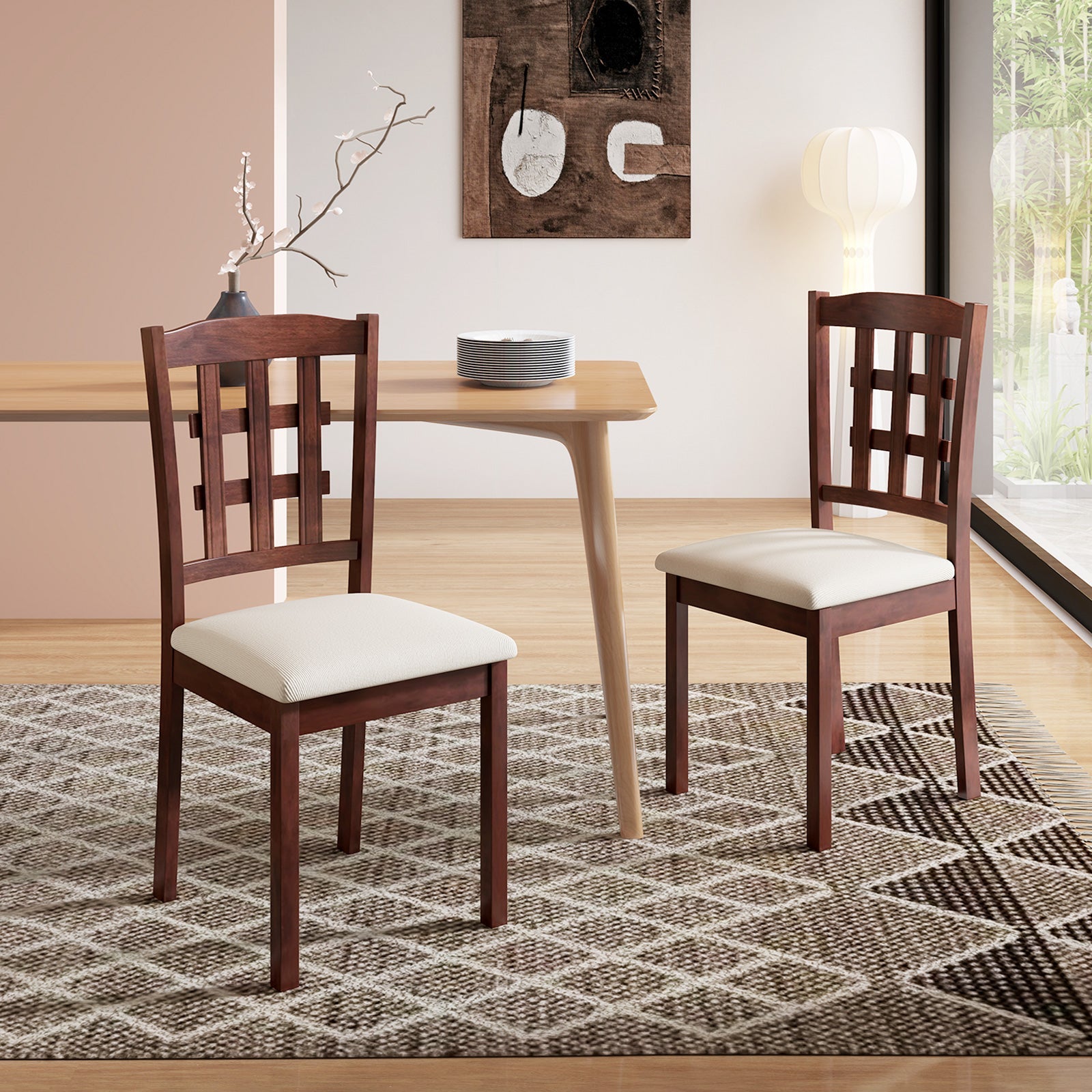 - [Natural Solid Rubber Wood Frame]: Crafted with solid rubber wood legs, these wooden side chairs boast exceptional sturdiness and resistance to deformation. The delicate polishing treatment ensures a smooth and burr-free surface for a refined finish.