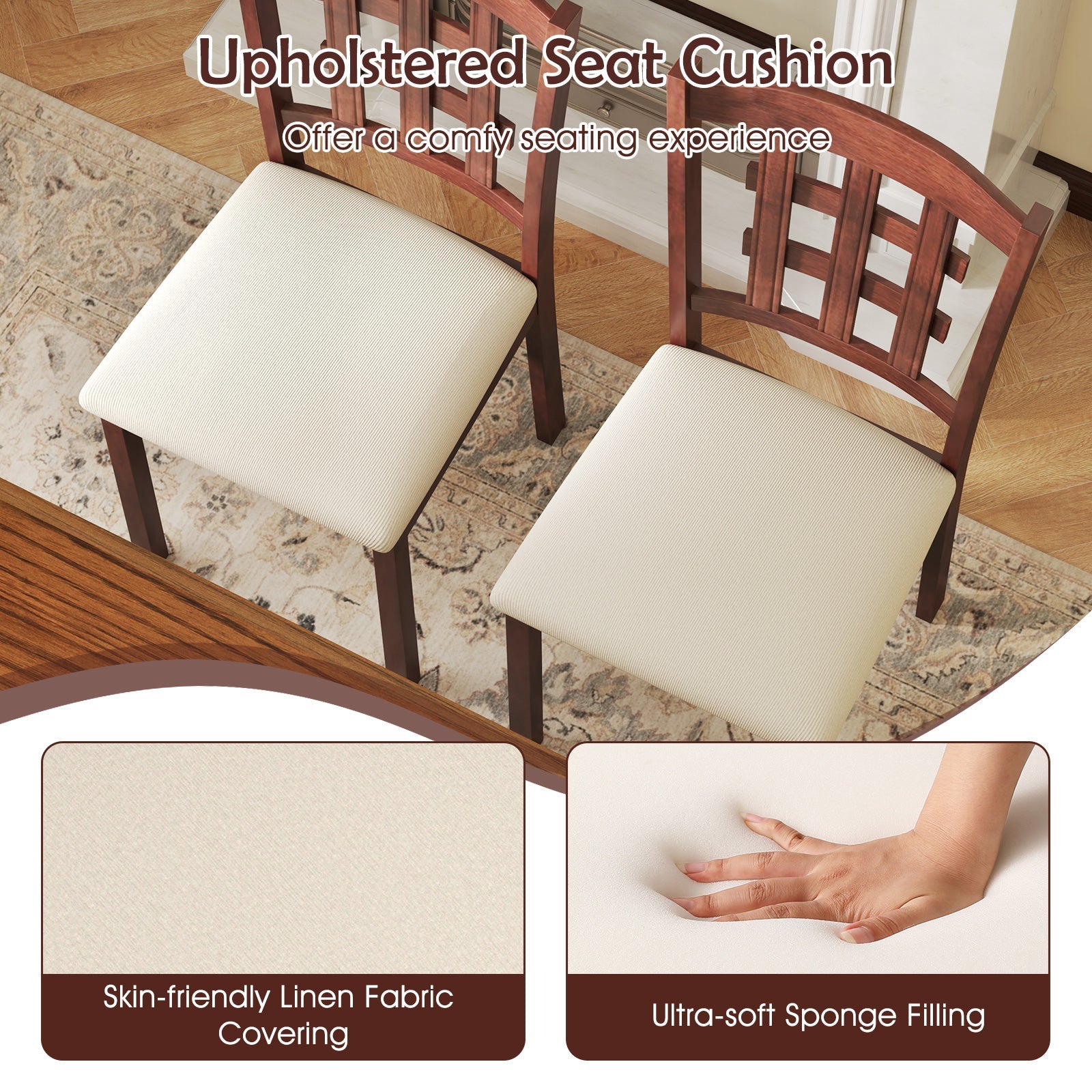 - [Comfy Sitting Experience]: The fabric dining chair set features a padded seat cushion with ultra-soft sponge filling and breathable linen fabric, offering optimal support and comfort for prolonged periods of sitting.