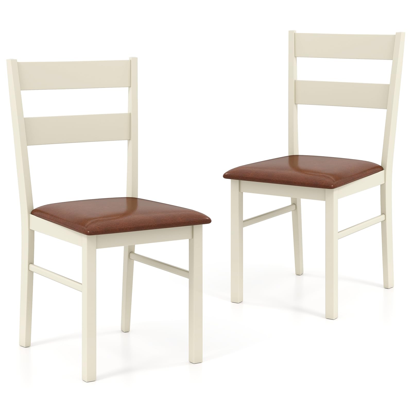 This wooden dining chair set is meticulously crafted with robust rubber wood frames, ensuring a stable and reliable seating solution for everyday use. Experience comfort tailored to your body with these chairs’ ergonomically curved backrests and soft padded seat cushions, reducing fatigue from prolonged sitting, perfect for enjoying leisurely meals or long conversations. The luxurious PU leather upholstery not only adds a touch of sophistication but also offers easy maintenance, making clean-up a breeze. Whether used in a traditional dining room setting, a contemporary office environment, or as accent chairs in a living room, these farmhouse dining chairs effortlessly blend in and add a touch of elegance to any space.