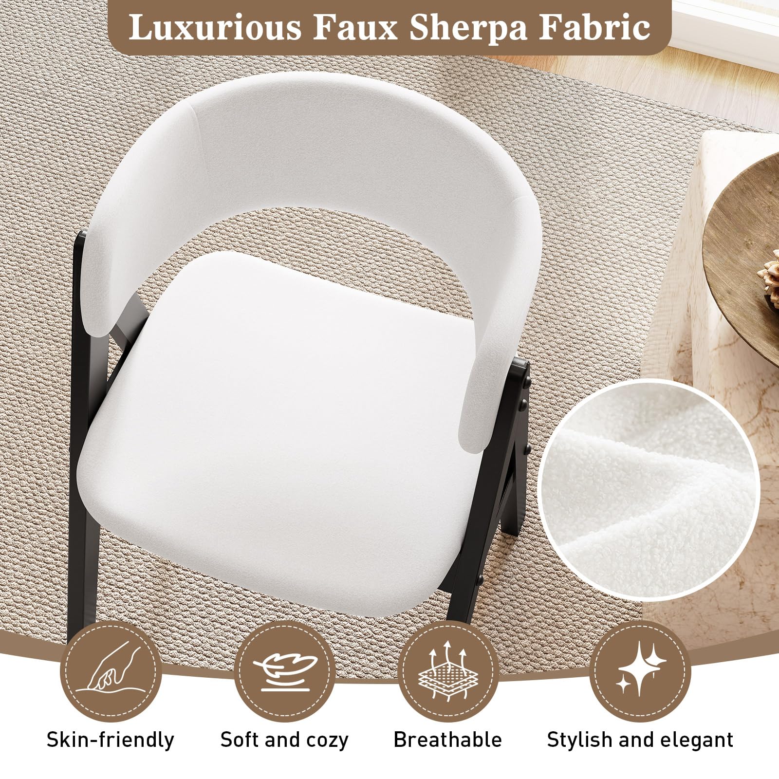 The white faux sherpa upholstery makes the chair stylish and elegant