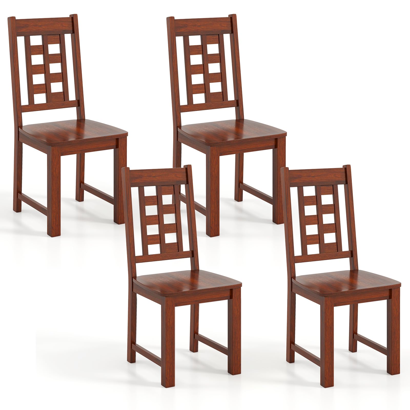 These solid wood chairs, with their rustic charm, feature a simple yet elegant design. It can seamlessly complement a variety of interior settings, including dining rooms, living areas and studies. Crafted from 100% solid rubber wood, the sturdy frame ensures long-lasting durability and a natural aesthetic that adds warmth to any room. The wide, comfortable seat and tilt high backrest are designed to fit your body shape, providing exceptional comfort and promoting good posture during extended sitting, while the elegant hollowed design of the backrest enhances both aesthetics and breathability. Additionally, the smooth surface is easy to clean and resistant to scratches, reducing maintenance efforts.