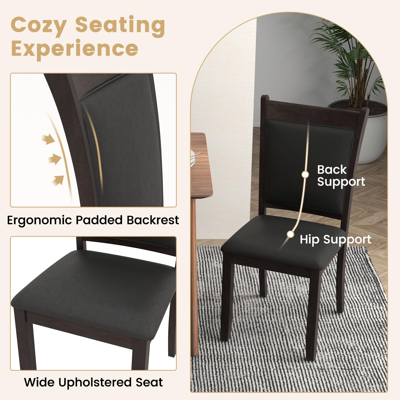 Add comfort and style to your dining space with our set of 2 upholstered chairs. Featuring a wide upholstered seat and ergonomic padded backrest, these chairs offer optimal comfort. Solid rubber wood frame provides reliability and strong support for long-term use. Perfect for dining rooms, living rooms, or restaurants, they blend seamlessly into any setting. The premium PVC leather upholstery is easy to clean, making maintenance a breeze. Elevate your dining experience with these elegant and versatile chairs.