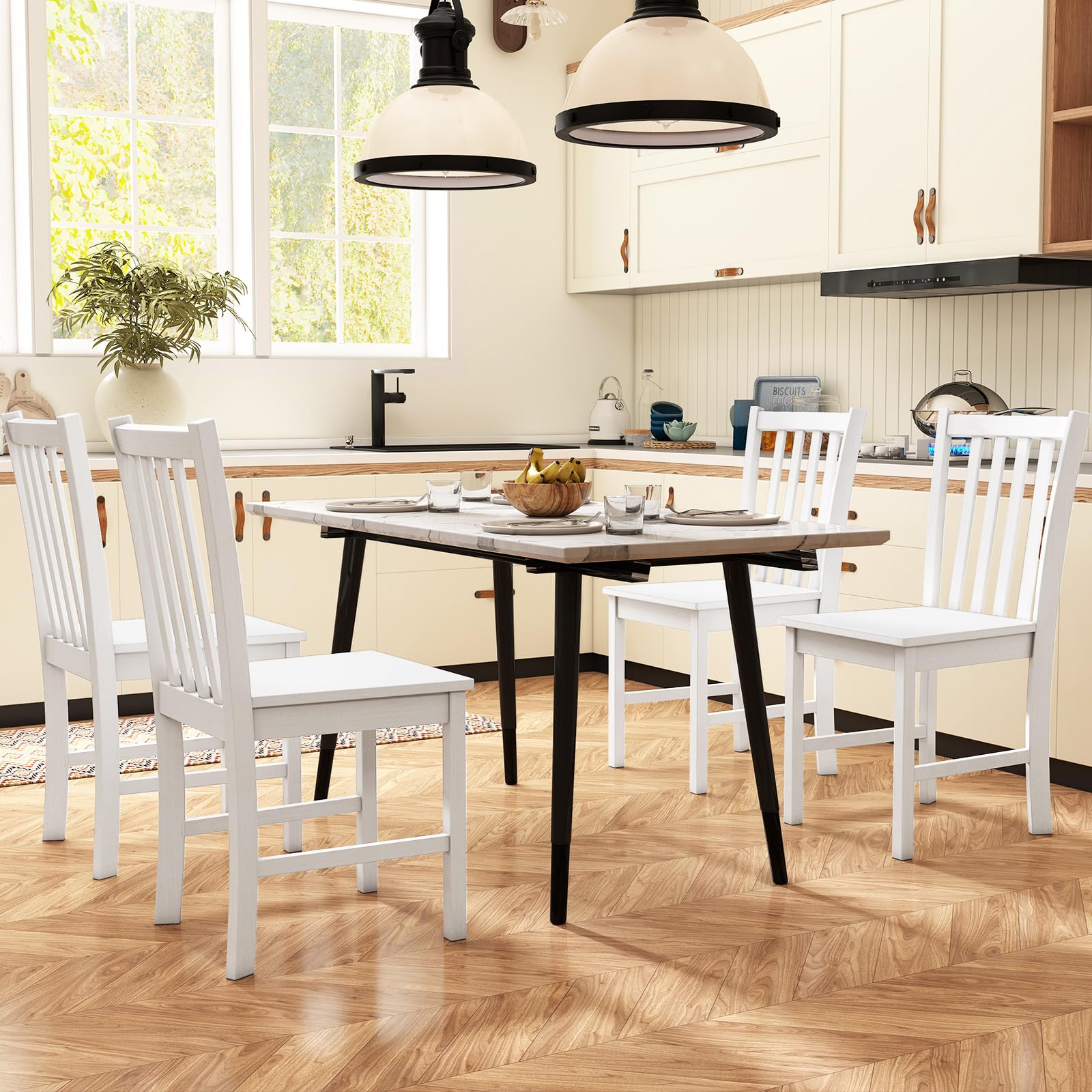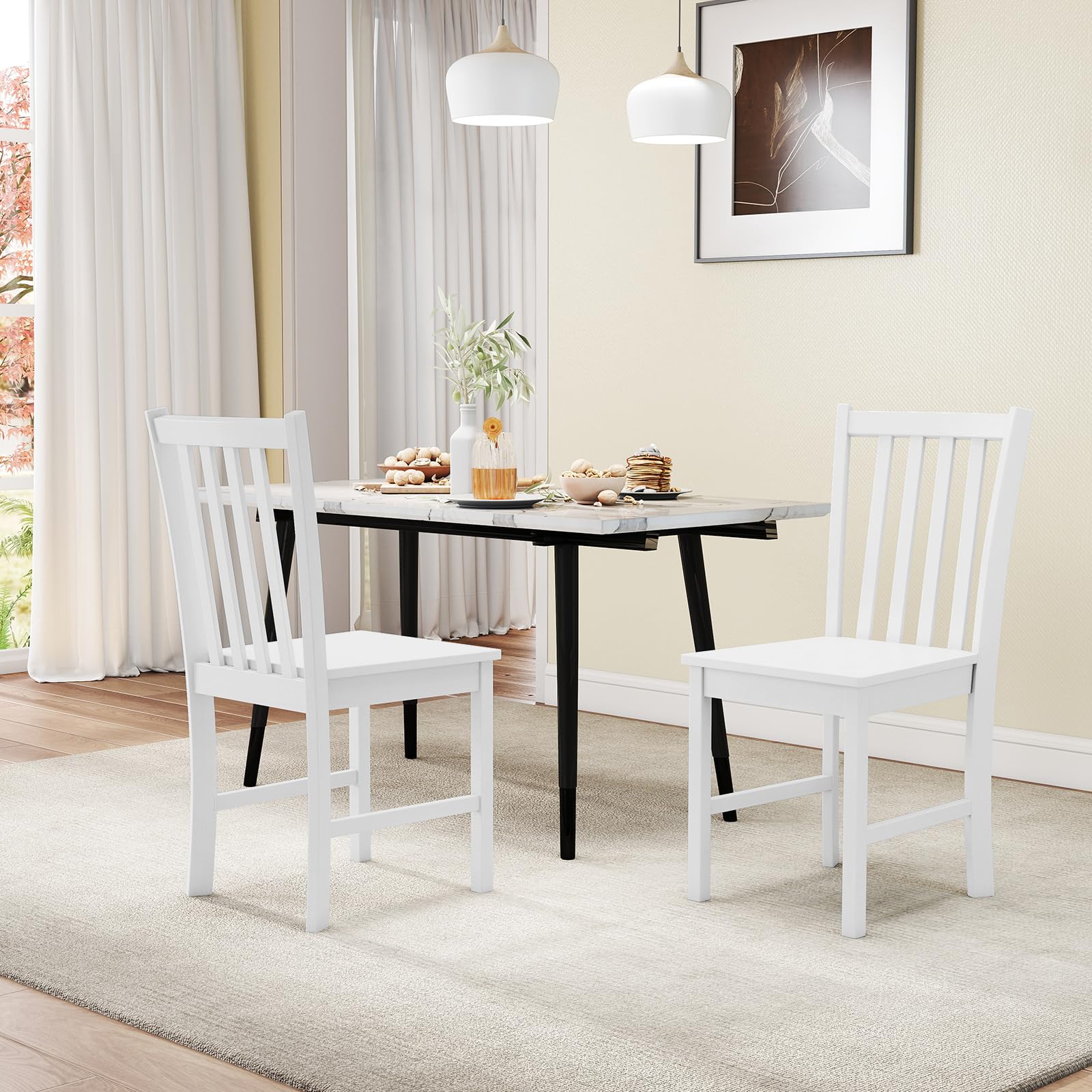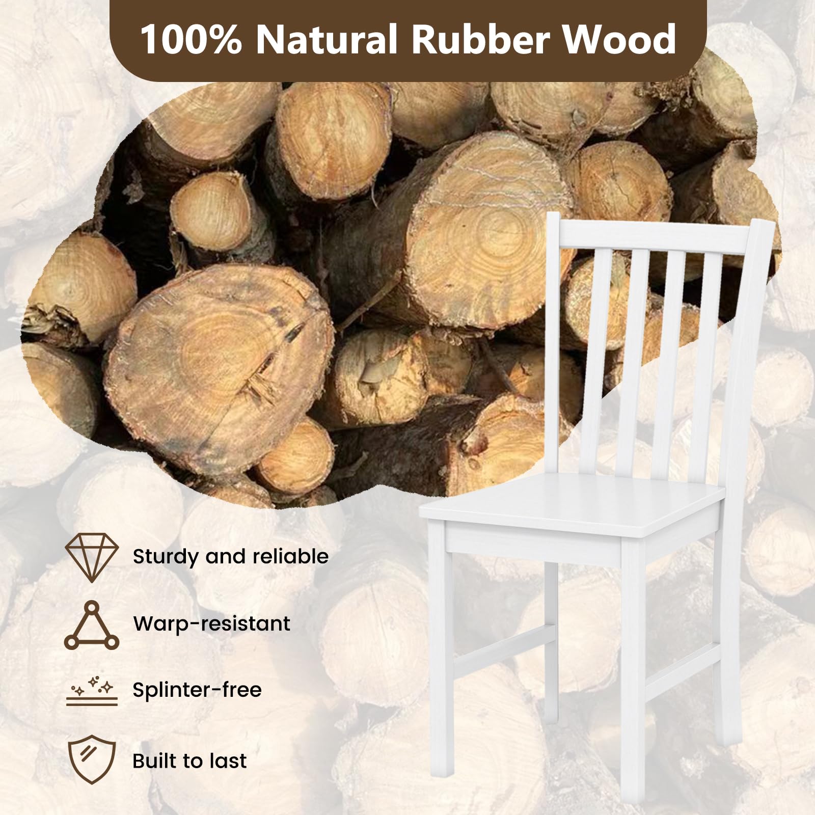 Constructed from 100% natural rubber wood, our wooden dining chairs boast exceptional durability and stability, ensuring they stand the test of time. The ergonomic design features a curved backrest with a hollowed design for ventilation, making long dinners or work sessions more comfortable. The chairs are designed with user safety in mind, featuring rounded corners to prevent injuries and reinforced crossbars for added support. The easy-to-clean surfaces ensure maintenance is a breeze, keeping your dining space impeccable with minimal effort. Available in sleek black and crisp white, these chairs will seamlessly integrate into various decoration styles, enhancing the aesthetic of any room they're placed in.