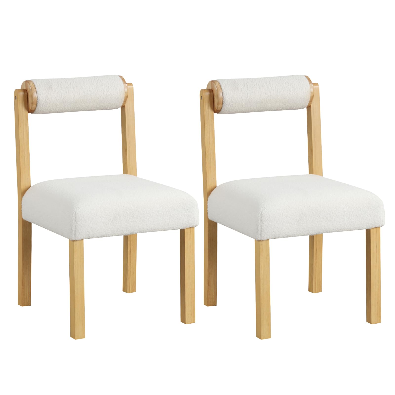 - Elegant Appearance: This wooden dining chair set features unique cylinder backrests, plush cushioned seats, and solid wood legs, coming in a charming mix of natural wood and white hues, which could also add modern farmhouse aesthetics to your living space.