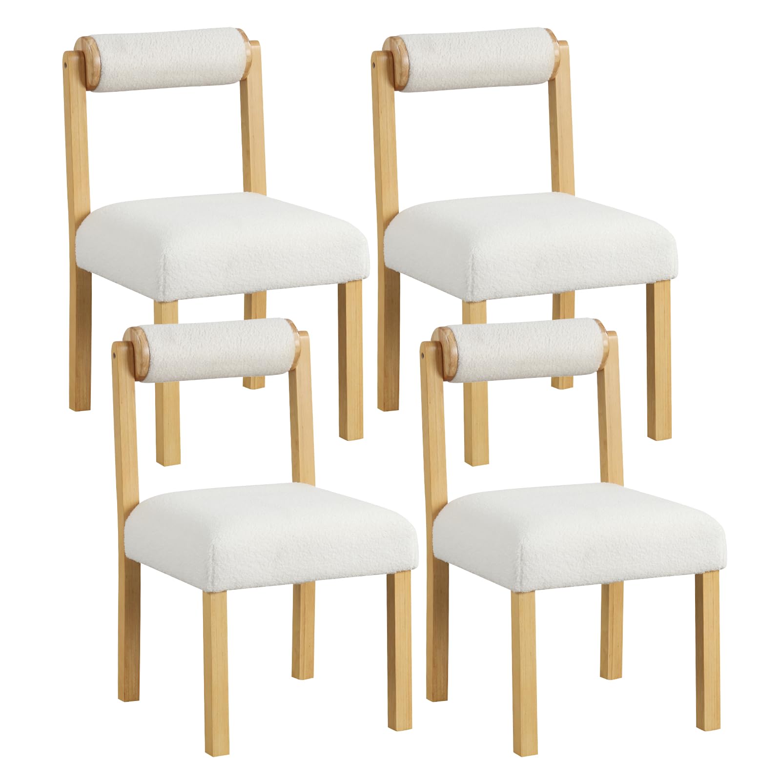 Our padded wooden dining chairs measure 20" x 23.5" x 34" (L x W x H), the seats measure 20" x 18.5" (L x W), and the seat heights are 19.5". Crafted with reliable rubber wood frames, these chairs offer unparalleled stability and reliability, ensuring a strong loading capacity of 330 lbs (each chair). For ergonomic comfort, they adopt 5.5" thickened seat cushions and cylinder open backs, offering a comfortable sitting experience. Moreover, the seats and backs are upholstered in faux sherpa fabric, creating a soft and inviting feel. Versatile and stylish, these chairs are suitable for various occasions, from intimate family dinners to lively gatherings with friends, making them a perfect addition to any dining space.