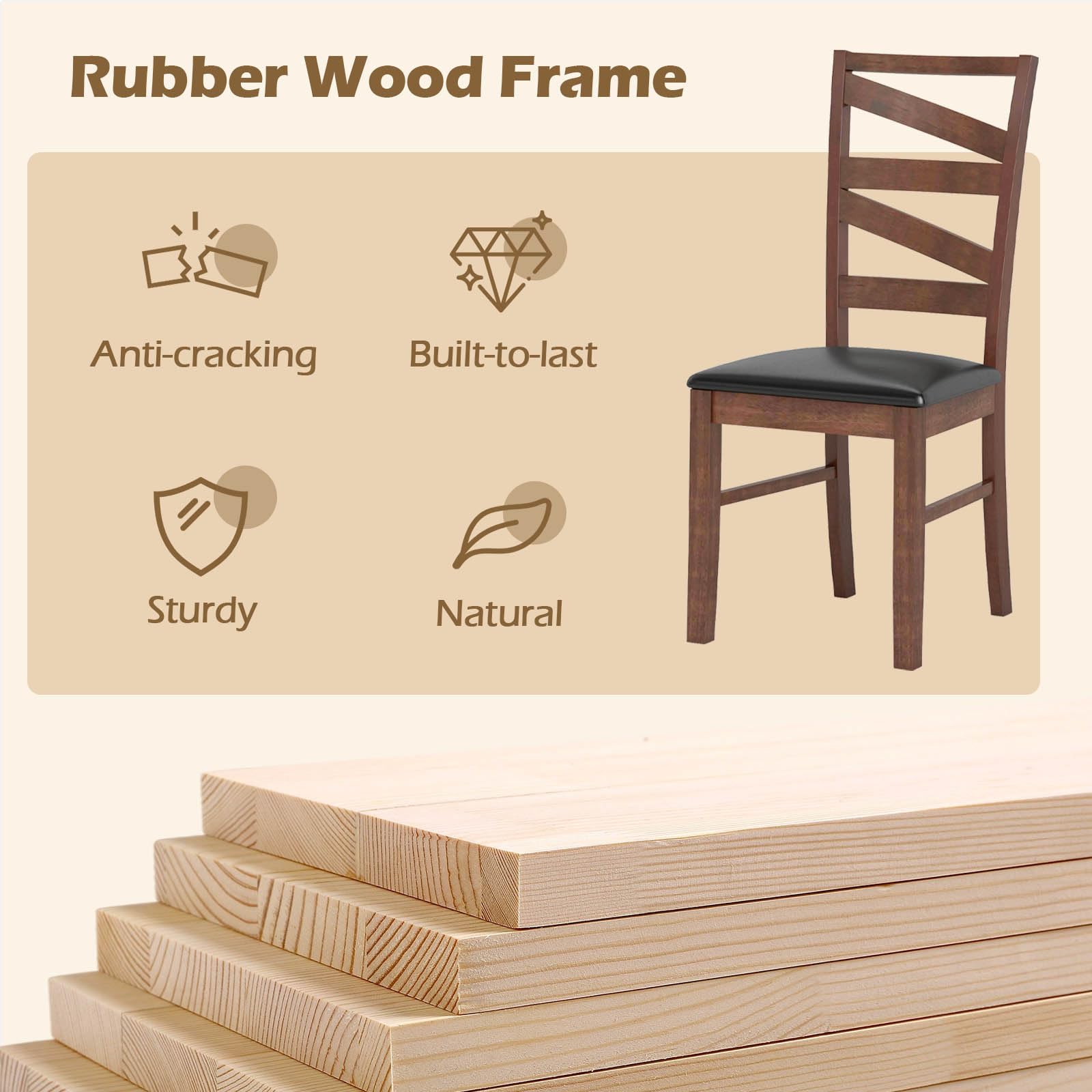 The dining chair features a PU leather upholstered seat cushion that not only exudes luxury but also withstands daily use. With soft sponge padding inside, it ensures ultimate comfort by reducing strain during long meals. Additionally, the contoured backrest complements the natural curve of your spine, offering cozy lumbar support. The W-shape open design not only enhances the chair's visual appeal but also enhances airflow for extra comfort. Supported by natural rubber wood legs and reinforced frame with crossbars, these wood kitchen chairs boast exceptional stability and durability. Hence, the set of 2/4 dinette chairs are ideal for various settings such as home dining rooms, cafes, or bistros.