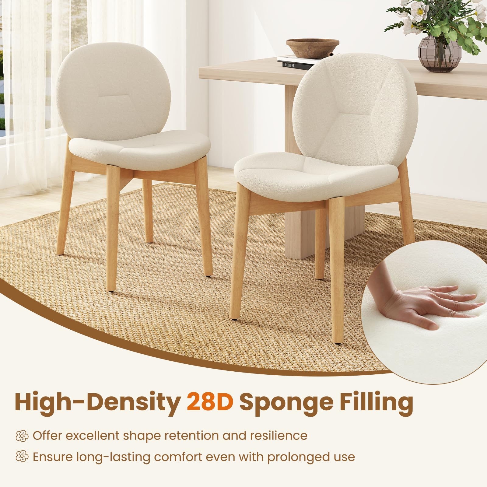 Meticulously crafted with solid rubber wood legs and reinforced with X-shaped supports, our wooden dining chairs ensure durability and are equipped with adjustable foot pads to maintain balance and protect floors. Densely padded with 28D high-density sponge and wrapped in luxurious looped yarn fabric, each chair offers a plush seating that brings comfort to dinners, conversations, or any seated activities. Moreover, the large backrests, curved seats, and thick padded cushions follow the principles of ergonomic design to ensure maximum comfort during prolonged use. Versatile and stylish, these chairs are suitable for various occasions, from intimate family dinners to lively gatherings with friends, making them a perfect addition to any dining space.