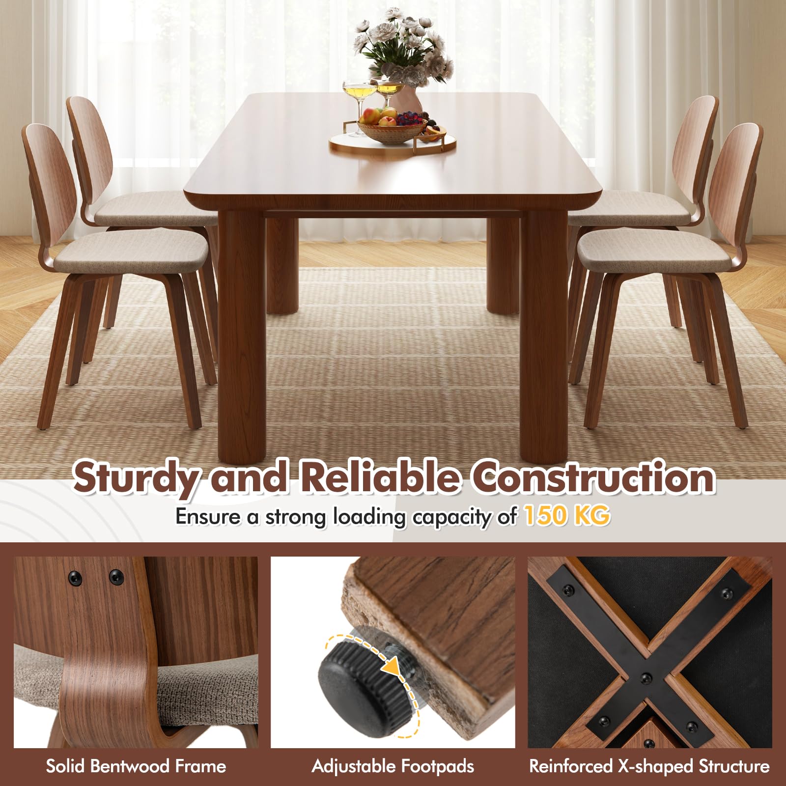 This wooden dining chair set boasts a robust construction with natural bentwood X-shaped frames, and adjustable footpads, ensuring unparalleled stability and durability for years to come. Moreover, the chairs are designed with soft padded seats and curved seats, offering a plush seating experience like no other. Covered in premium chenille fabric, the chairs are not only cozy but also exude a touch of luxury and sophistication, enhancing the overall aesthetic of your dining area. Moreover, complemented with the rich walnut wood finish, these chairs create a timeless look that effortlessly complements various decoration styles, making them ideal for both formal dining rooms and casual dining spaces.