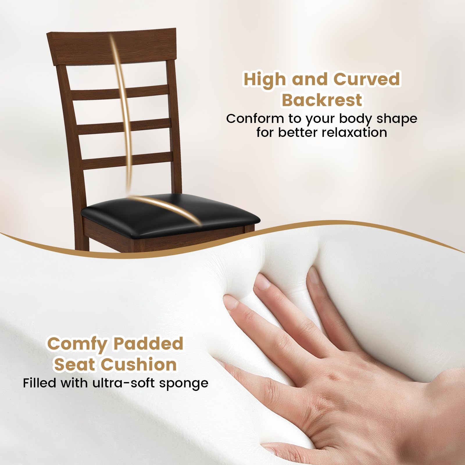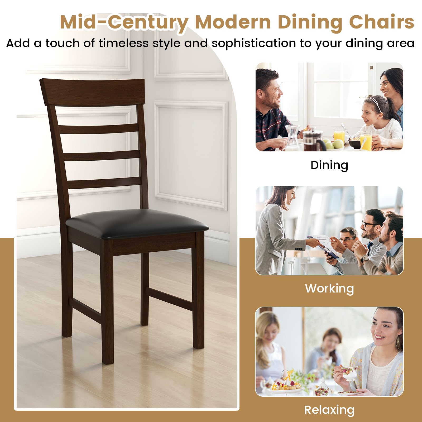 This wooden dining chair set is meticulously crafted with robust rubber wood frames, ensuring a stable and reliable seating solution for everyday use. Experience comfort tailored to your body with these chairs’ ergonomically curved high backrests and soft padded seat cushions, reducing fatigue from prolonged sitting, perfect for enjoying leisurely meals or long conversations. The luxurious PU leather upholstery not only adds a touch of sophistication but also offers easy maintenance, making clean-up a breeze. Whether used in a traditional dining room setting, a contemporary office environment, or as accent chairs in a living room, these mid-century modern dining chairs effortlessly blend in and add a touch of elegance to any space.