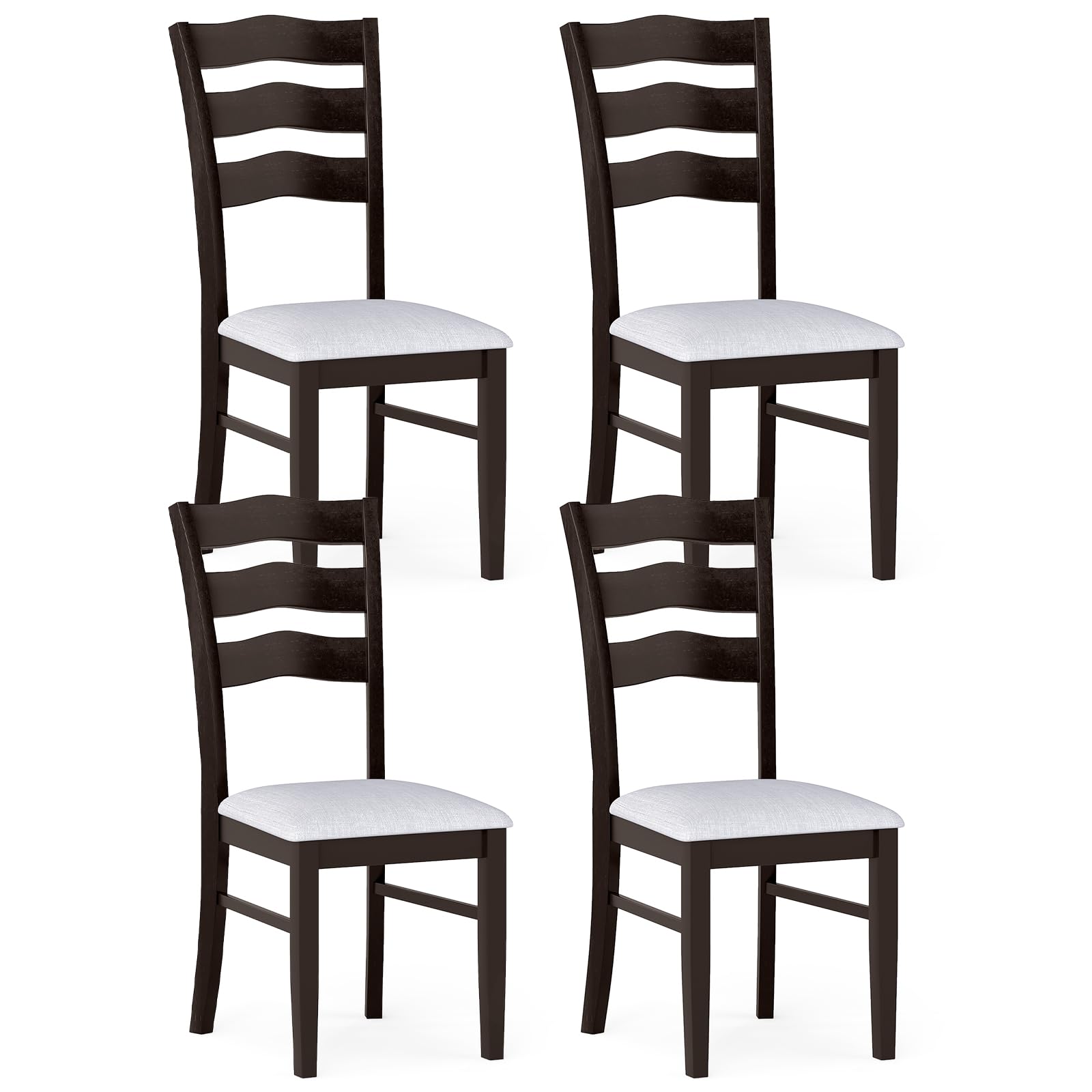The seat cushion of the dining chair is upholstered in high-quality microfiber velvet, offering a luxurious feel while resisting everyday wear. Inside, soft sponge padding ensures optimal comfort by evenly distributing weight and reducing strain during extended meals. Moreover, the contoured backrest follows the natural curve of your spine, delivering superior lumbar support. Its wave-like open design not only adds a refined aesthetic but also improves airflow for added comfort. Boasting natural rubber wood legs, the wood kitchen chairs provide exceptional stability. Also, the supporting frame is reinforced by sturdy crossbars for enhanced durability. Perfect for home dining rooms, cafes, or bistros, these chairs blend ergonomic functionality with timeless sophistication.