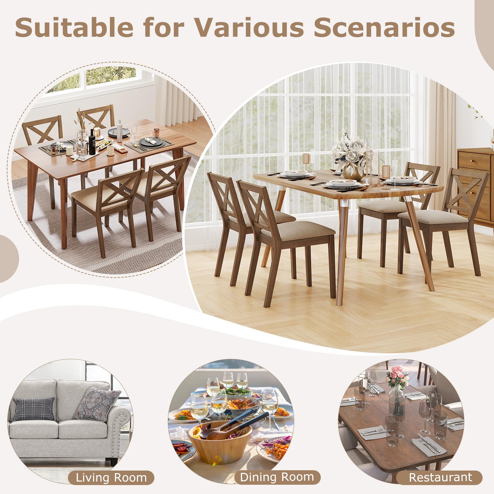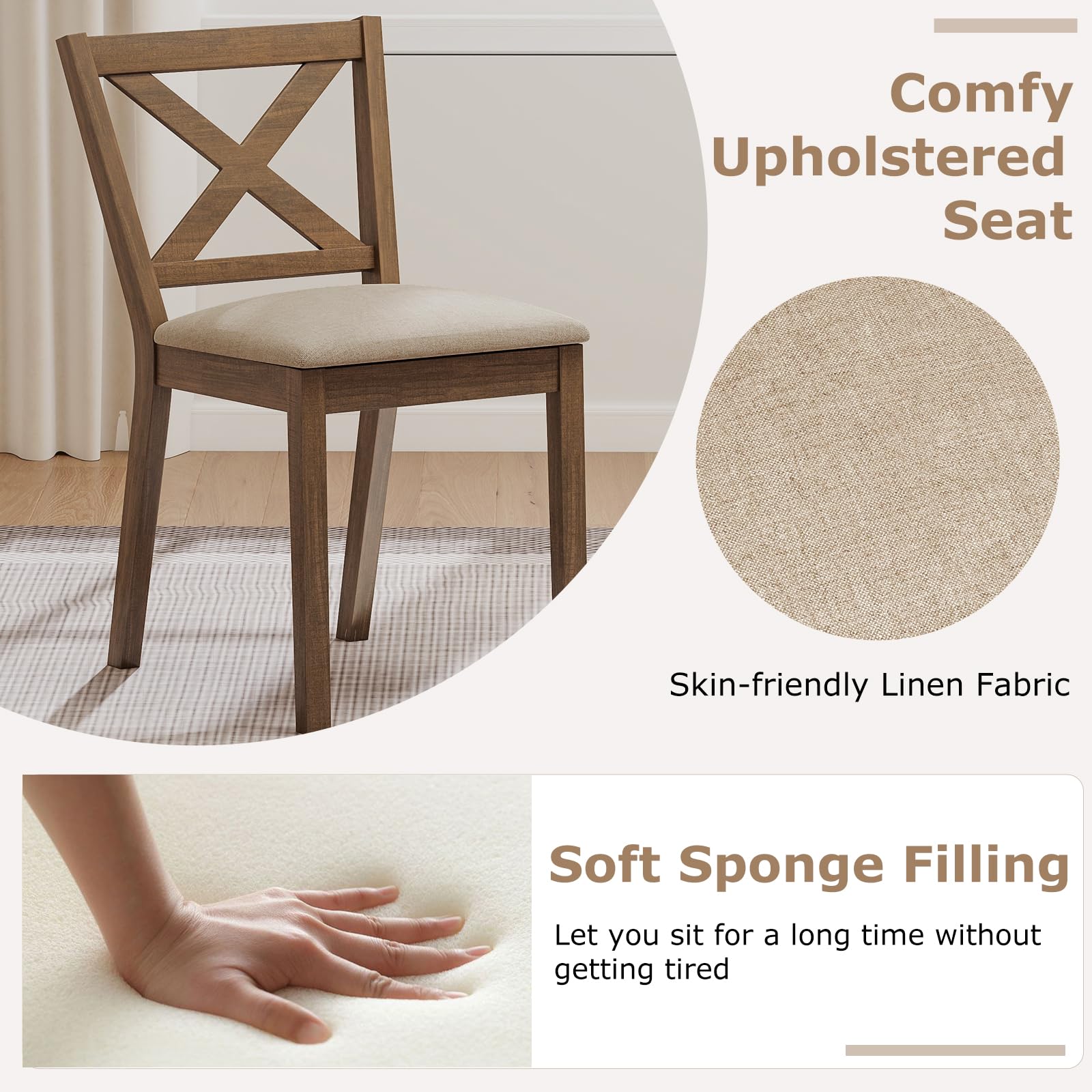 Looking for comfortable and stylish dining chairs that can enhance your dining experience? These armless dinette chairs come with a soft sponge-filled seat cushion and skin-friendly linen fabric, offering exceptional comfort for long meals. Crafted with a sturdy natural rubber wood frame, they can support up to 400 lbs to protect your floors. Besides, the ergonomic tilt backrest and breathable X-shaped design provide both support and a cool, elegant feel. Additionally, with a farmhouse charm and rustic finish, these chairs are perfect for kitchens, dining rooms, or restaurants.