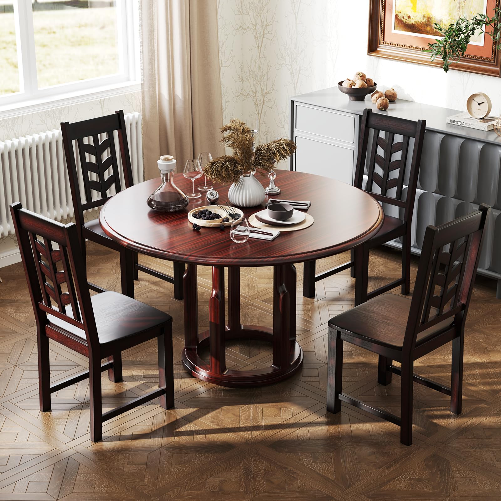 The dining chair features an innovative "leaf-shaped" backrest, with a unique and eye-catching design that stands out. The high backrest conforms to ergonomics, providing protection for your back and spine, helping you maintain a proper sitting posture. Furthermore, the symmetrical leaf-shaped backrest is designed to fit the contours of your back, promoting heat dissipation and offering you the best seating experience. Crafted from 100% solid rubber wood, the dining chair is sturdy and long-lasting. Thanks to the reinforced crossbars and thickened legs, each chair has a strong weight capacity of 400 lbs. With its minimalist silhouette and elegant style, the kitchen chair set can complement various type of furniture, adding a touch of luxury to your home. It is perfect for use in kitchens, dining rooms, offices, and other areas.