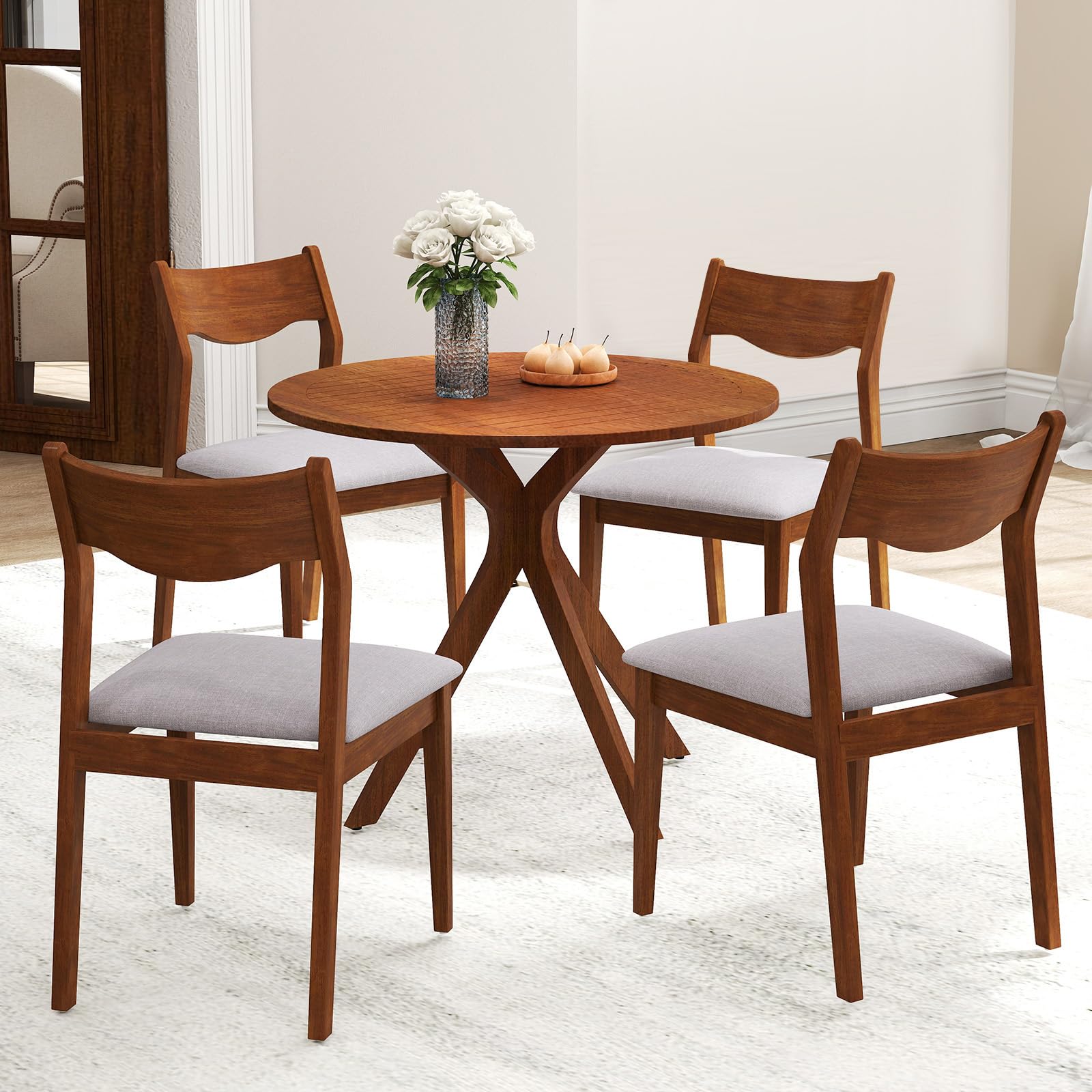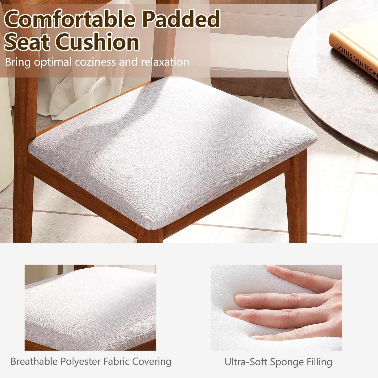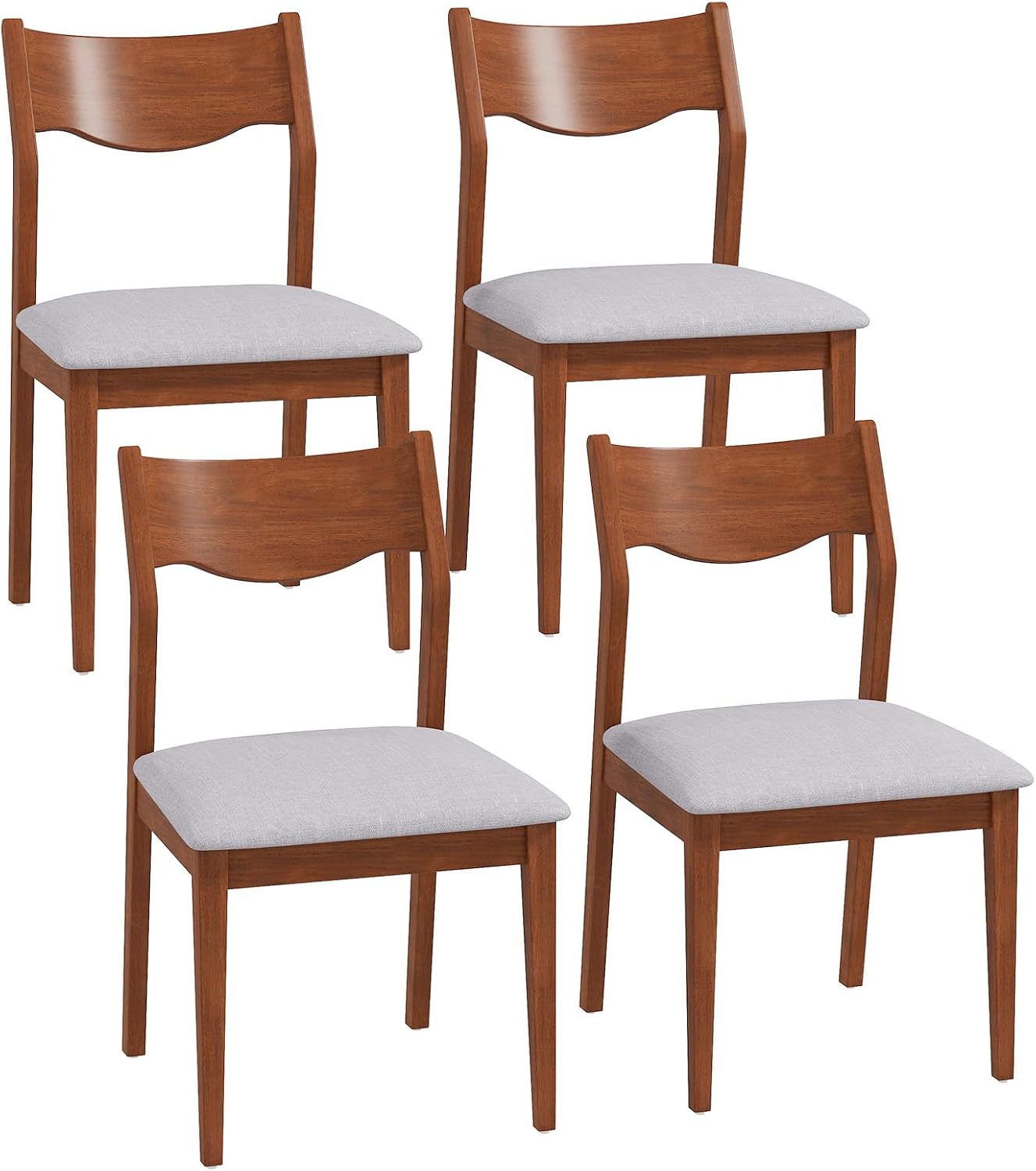 This meticulously crafted wooden dining chair set features sturdy rubber wood frames, offering a stable and reliable seating solution for everyday use. Experience unparalleled comfort with padded seat cushions upholstered in breathable linen fabric and filled with soft sponge, creating a luxurious feel that elevates your dining atmosphere. The chairs are designed with curved backrests and wide seats to promote proper posture and reduce strain during meals or gatherings. Finished in a warm and rich walnut wood color, these chairs seamlessly complement a variety of decor styles, making them ideal for a range of settings, from formal dinner parties to casual family meals.