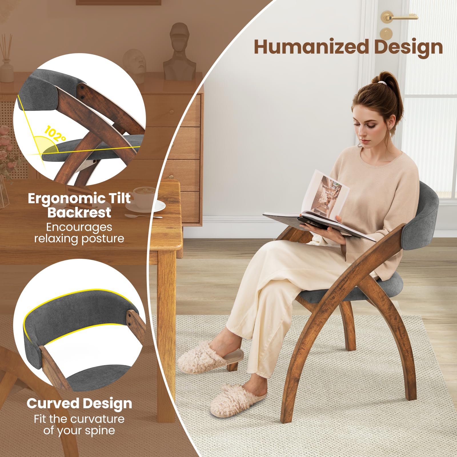 The 102° tilted backrest of our dining chair is engineered to promote a relaxing posture while you dine. It follows the natural curvature of your spine, providing optimal support and reducing strain. Featuring a padded seat and backrest, the wood dinner chairs ensure that you can enjoy your meals in comfort. The wear-resistant polyester cushioning not only adds a touch of luxury but also ensures long-lasting use. The unique Y-shaped rubber wood frame of our dining chair not only adds a touch of sophistication but also ensures sturdy support. Whether you're hosting a formal dinner, studying for hours on end, or enjoying a meal at your favorite restaurant, the kitchen chair is the perfect choice.