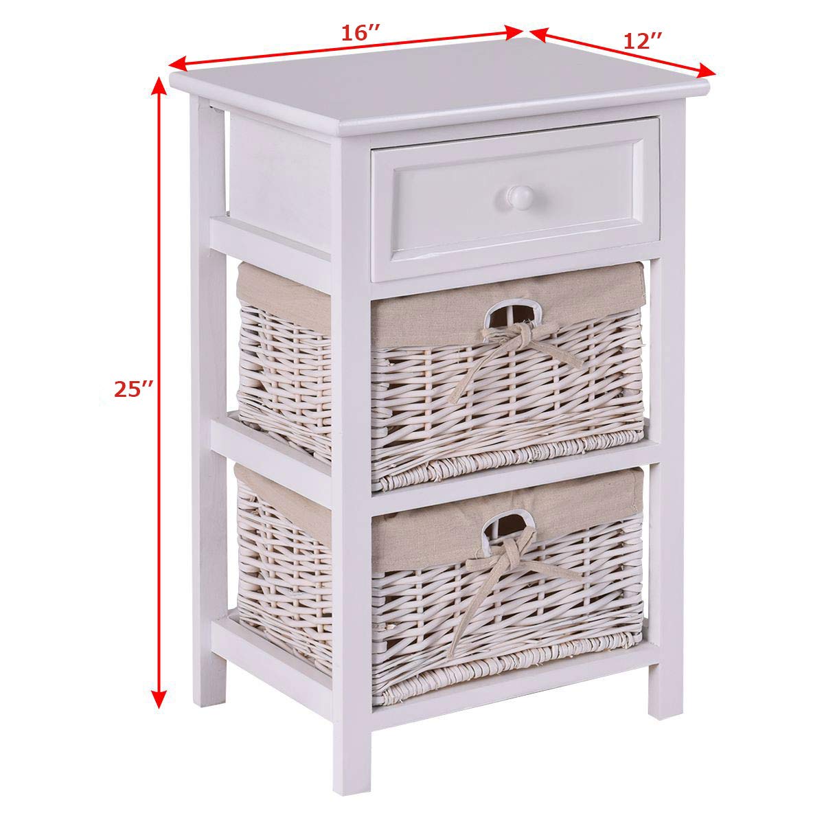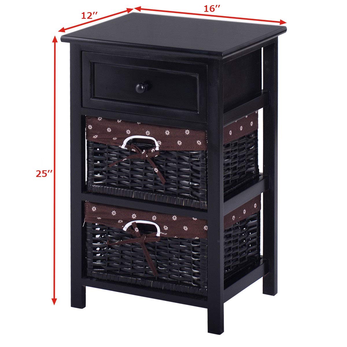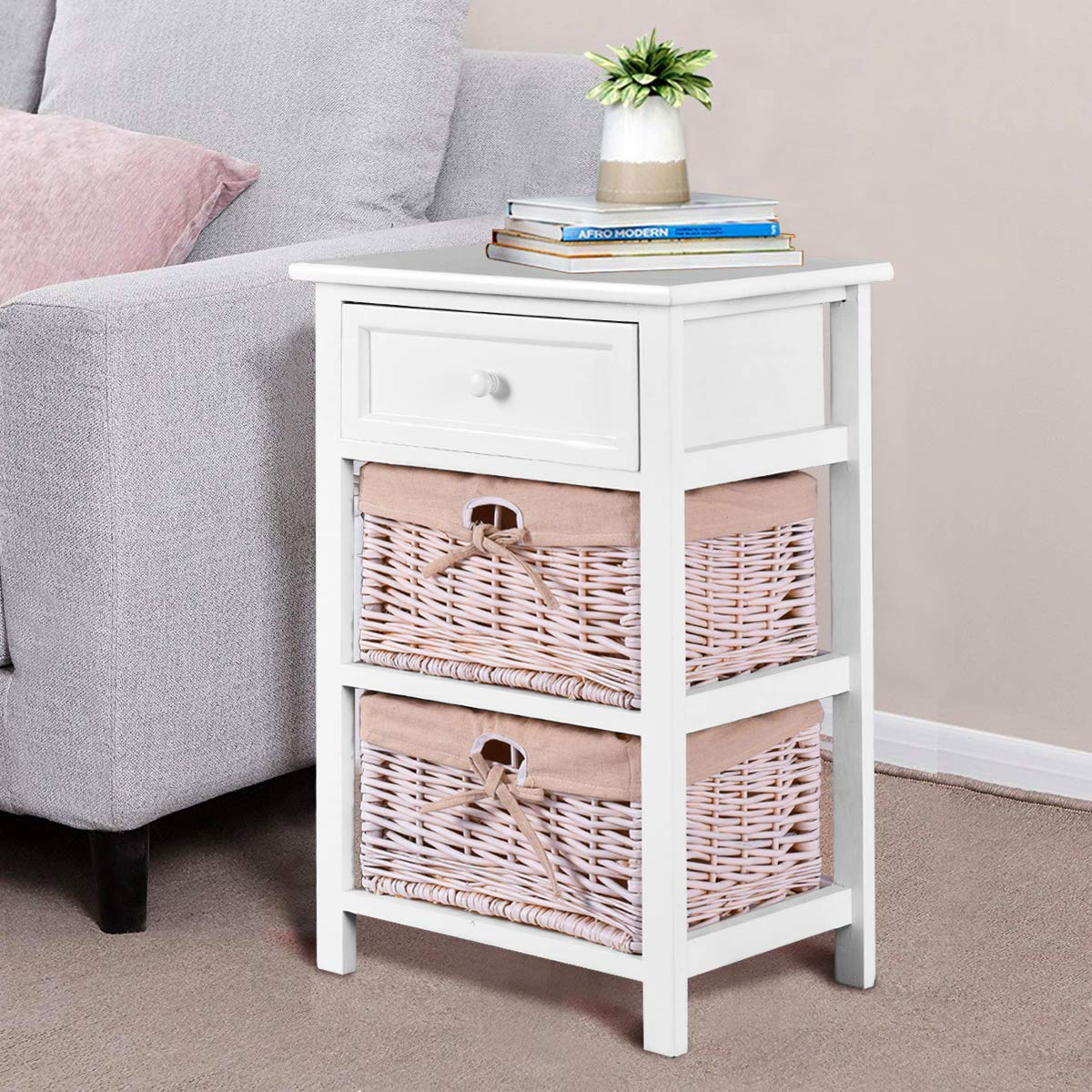Product form Giantex Wooden Nightstand 3 Tiers W/ 2 Baskets and 1 Drawer Bedside Sofa Storage Organizer $89.99 ColorBlack Quantity 1 2 Quantity Add to cart This item is a recurring or deferred purchase. By continuing, I agree to the cancellation policy and authorize you to charge my payment method at the prices, frequency and dates listed on this page until my order is fulfilled or I cancel, if permitted. Your order will be shipped for free!