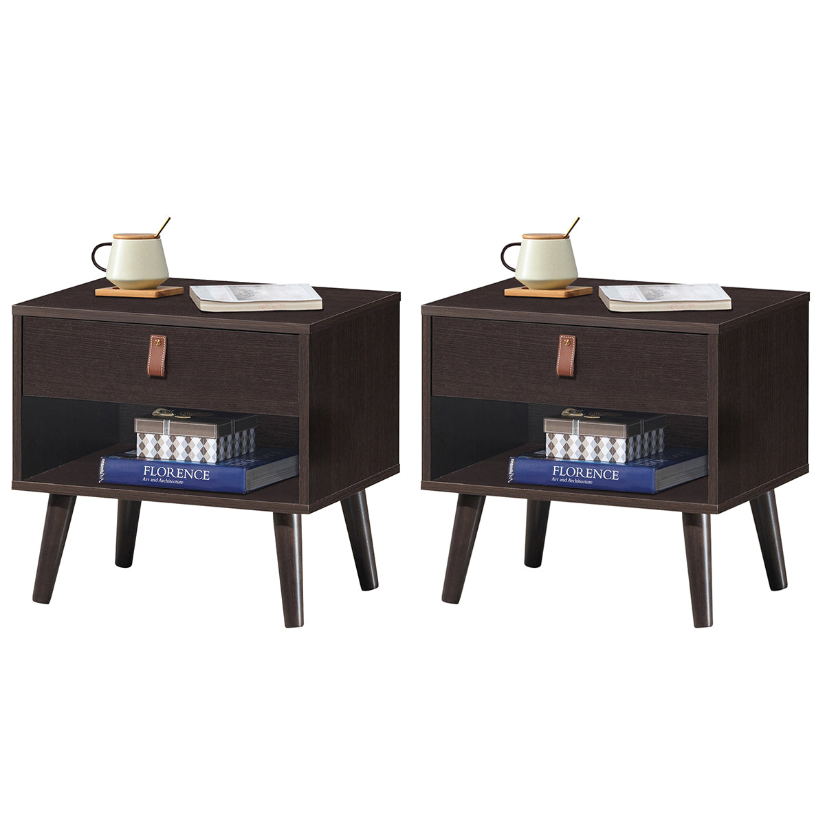 Made of highquality chipboard and MDF board, this nightstand is both beautiful and durable.Besides, it has good bearing capacity and stability. Equipped with one shelf and one drawer, our end table offers large storage space foryou to arrange you items, which keeps your room clean and tidy. Mostimportantly, mid-century style of our bedside table, combing both modern andclassic, fits any decor and other furniture.