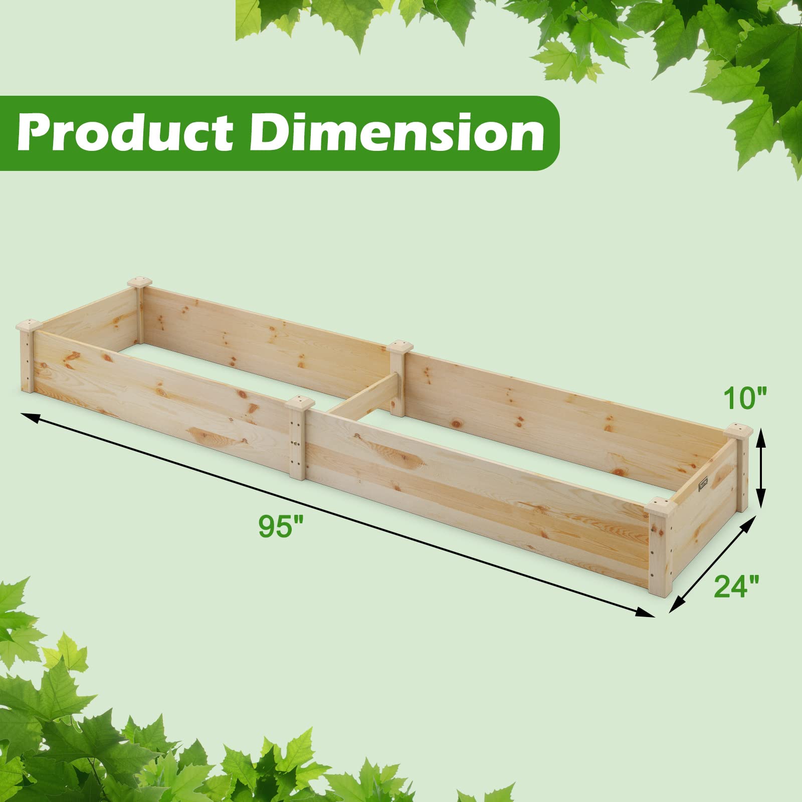 - [Wide Applications]: With measurements of 95” x 24” x 10”, this wooden planter box has a large capacity and is ideal for various types of plants, such as herbs, vegetables, flowers, and more. And the natural style will add elegance to your yard, garden, etc.