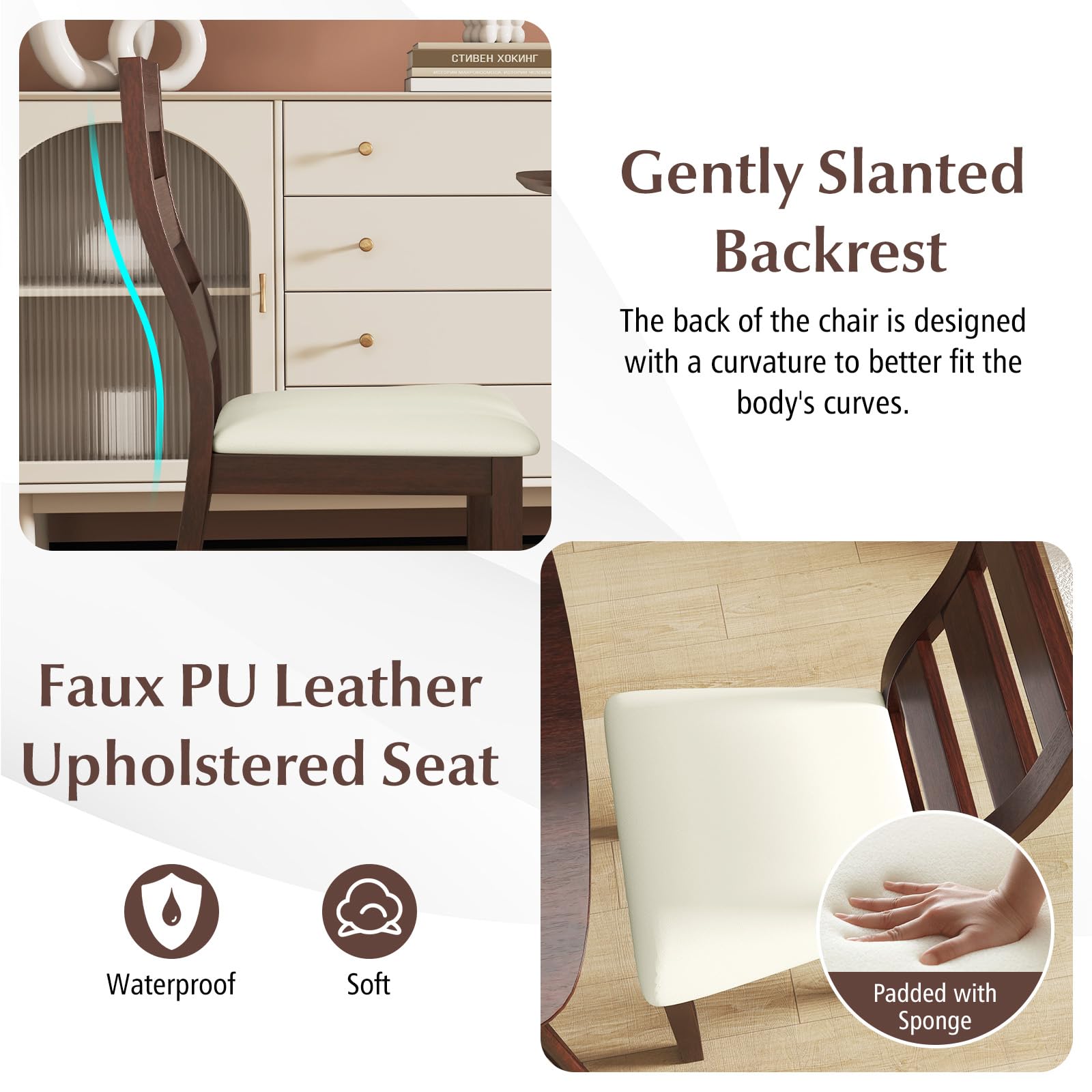 Faux PU leather upholstered seat is waterproof and wear-resistant