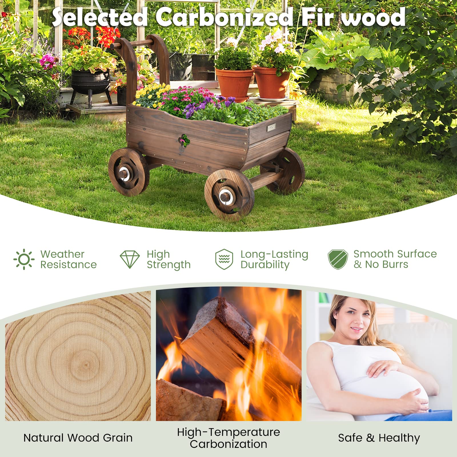 [Multifunctional Design]: The wooden wagon cart comes with a deep planter box, which can be used for cultivating plants or displaying flowerpots. And with its rustic design and vintage appearance, the decorative flower cart can be a perfect addition to any indoor and outdoor space.
