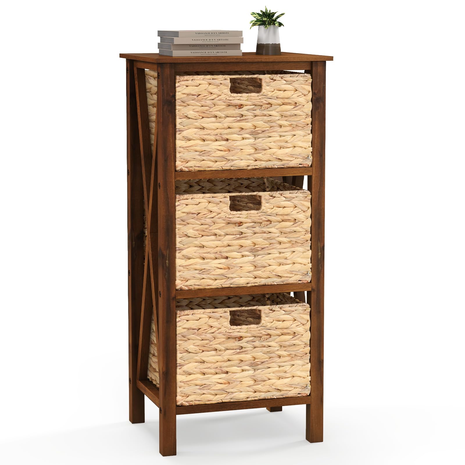 The versatile nightstand combines aesthetic beauty with great practicality. You are capable of classifying items by means of 2 removable seagrass baskets. The cabinet top is perfect for placing frequently used essentials for easy fetch. Superior materials are selected to make the end table stand out from other ordinary ones. Natural acacia wood and rubber wood mean better durability, longer life span and higher sturdiness. The mid-century nightstand matches well with other furniture and adds aesthetic beauty to your living surroundings, either for living room, bedroom, closet and entryway.