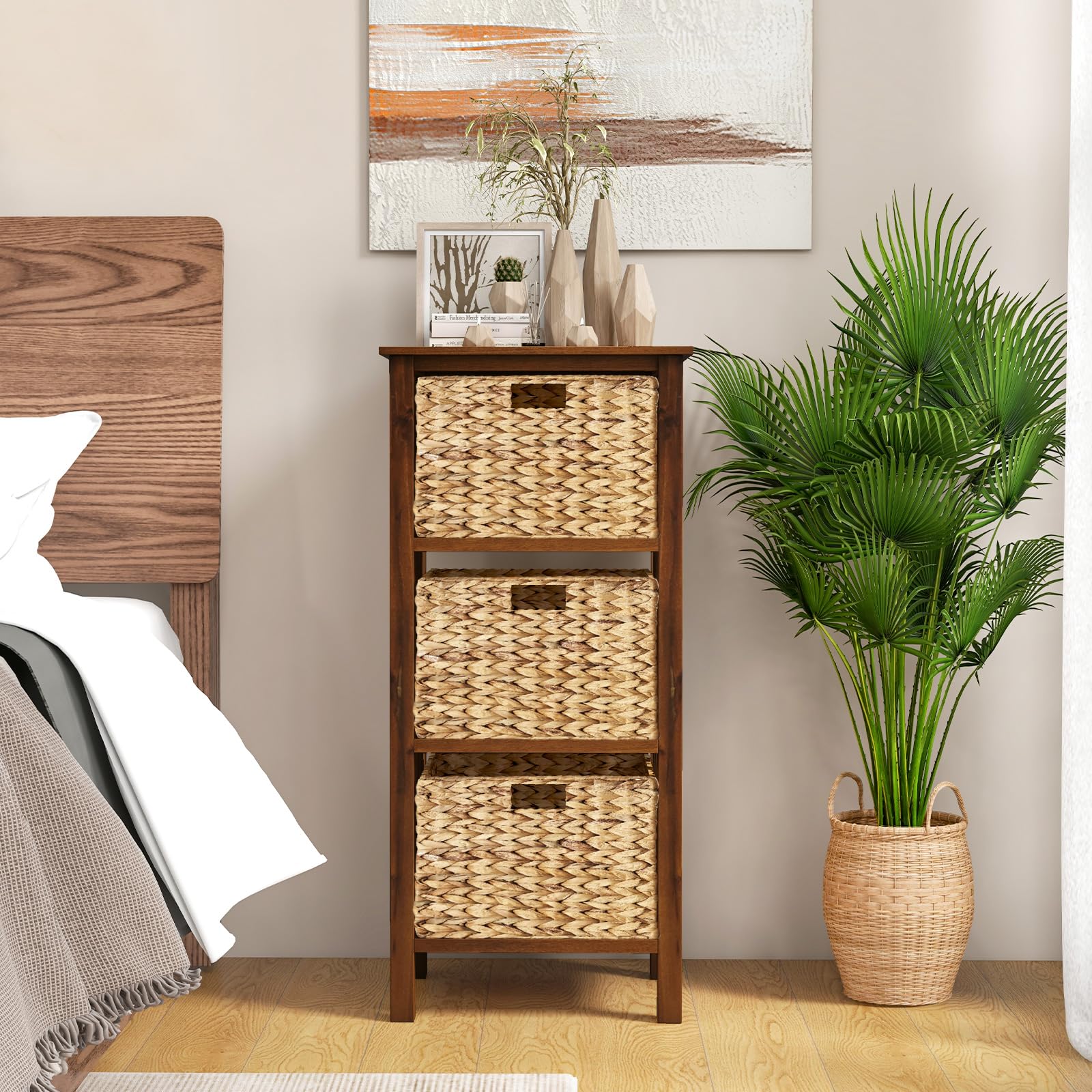 • Rattan Wicker Baskets for Tidiness: Featuring 3 removable baskets, this 3-tier side table offers classified storage options, keeping items organized and out of sight. The baskets are made of premium seagrass that combines strong toughness and excellent durability.