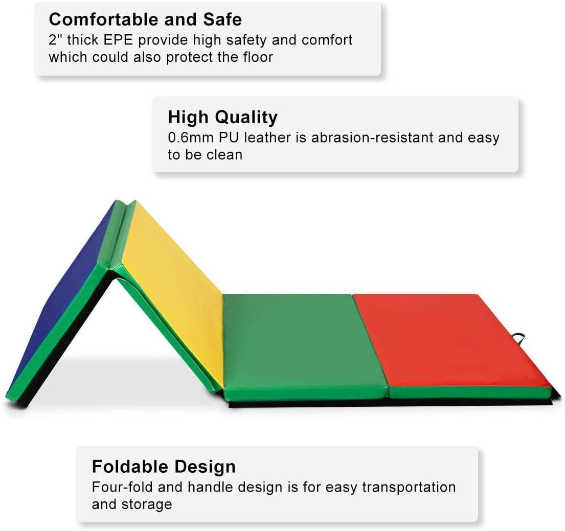 - Easy To Storage: This gymnastic mat can be folded into 4 quarters for easy carry and storage, it can be folded to fit into compact spaces.