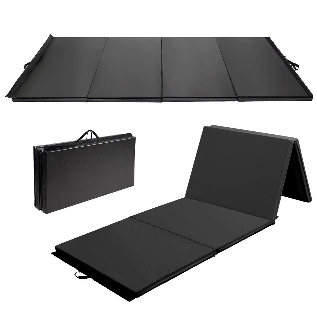 This is our new 4' x 10' x 2" folding foam mat. It is an excellent mat for tumbling, yoga, aerobics, Pilates, martial arts, dance, and more. You can put it on anywhere for it is folding 4-panel compact storage design. Also, you can carry it to go hiking for its handle and folding design. Have you been heartbeat? Do not hesitate, just buy one.
