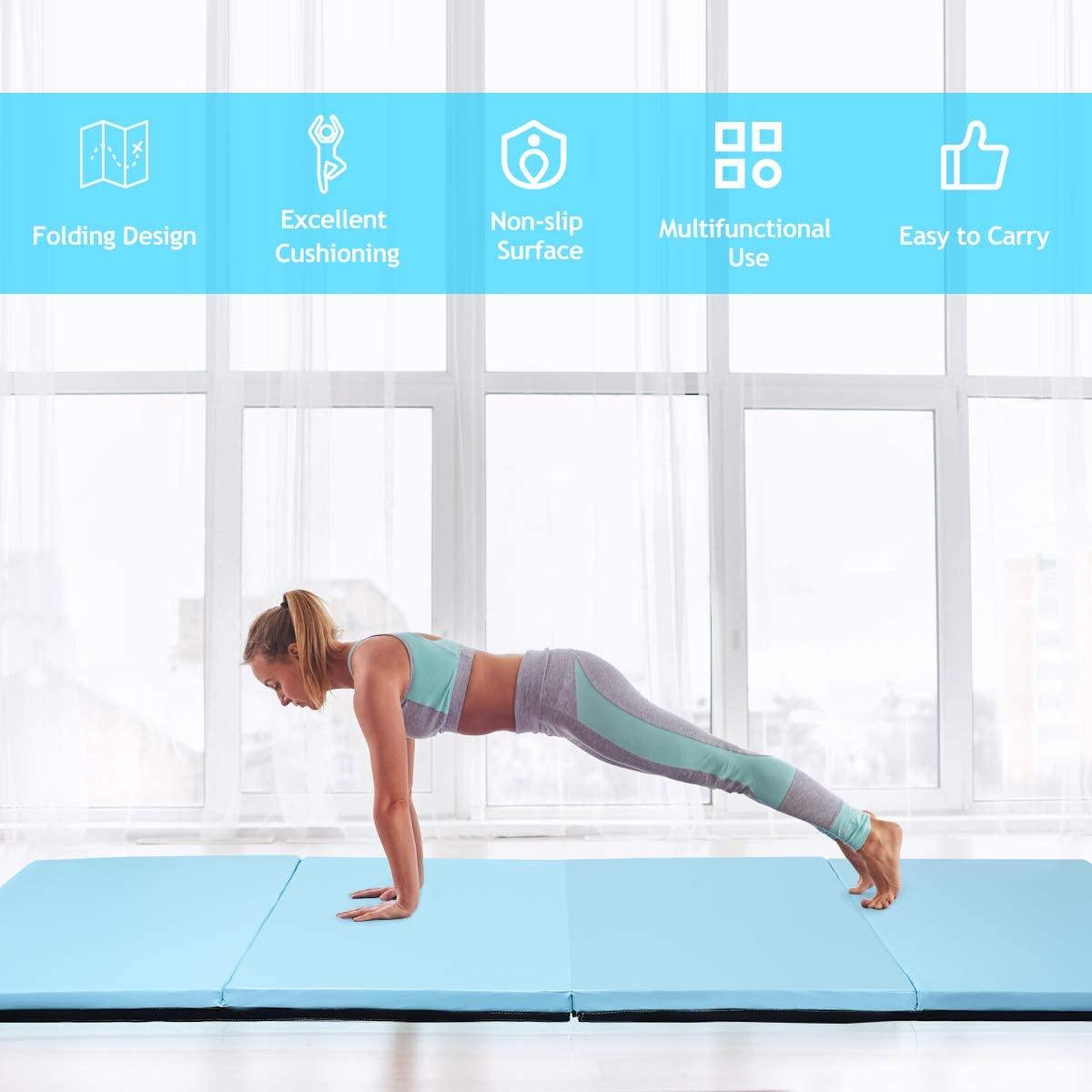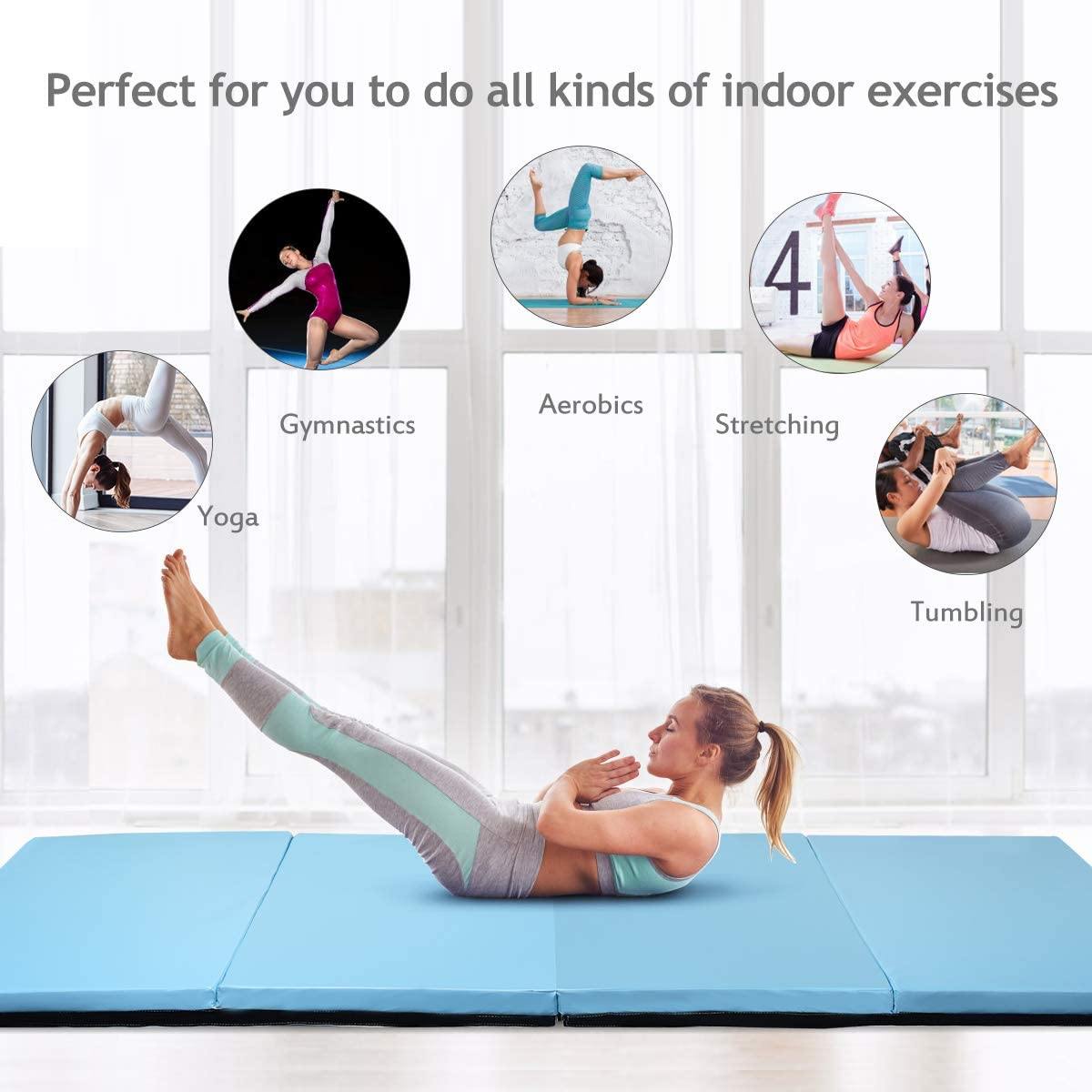 Gymnastics Mat, Anti-Tear Folding Gymnastics Exercise Mats Carrying Handles