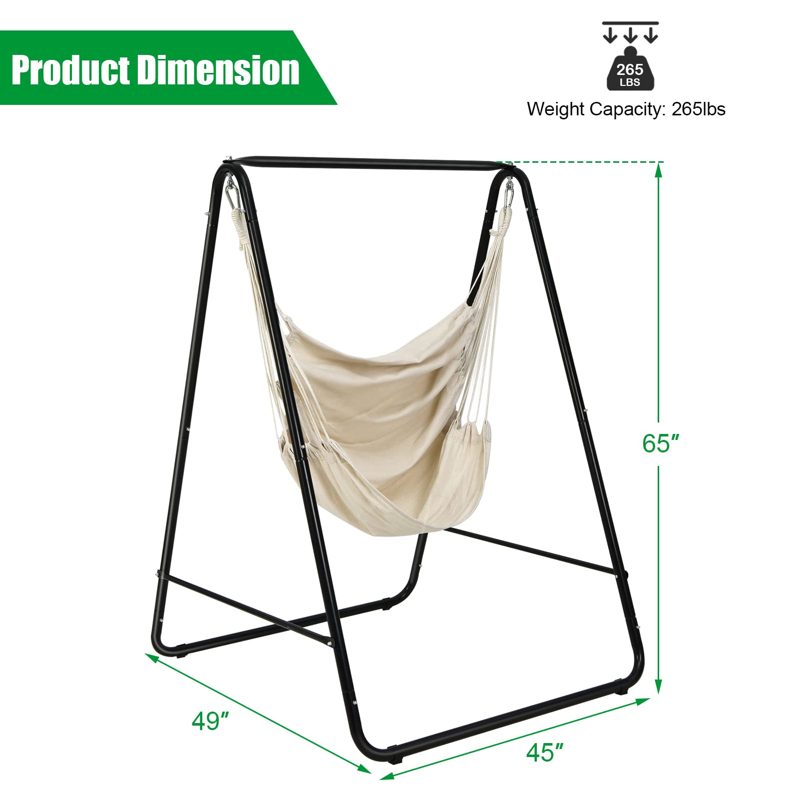 - Stable Triangular Structure: The hammock chair stand with thickened and rustproof steel frame offers long-lasting use without crack or deformation. Besides, the stable U-shaped base with non-slip foot pads increases overall stability. The reinforced hanging ring and carabiners ensure your safety during use.