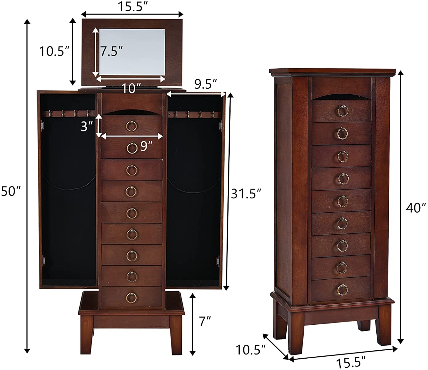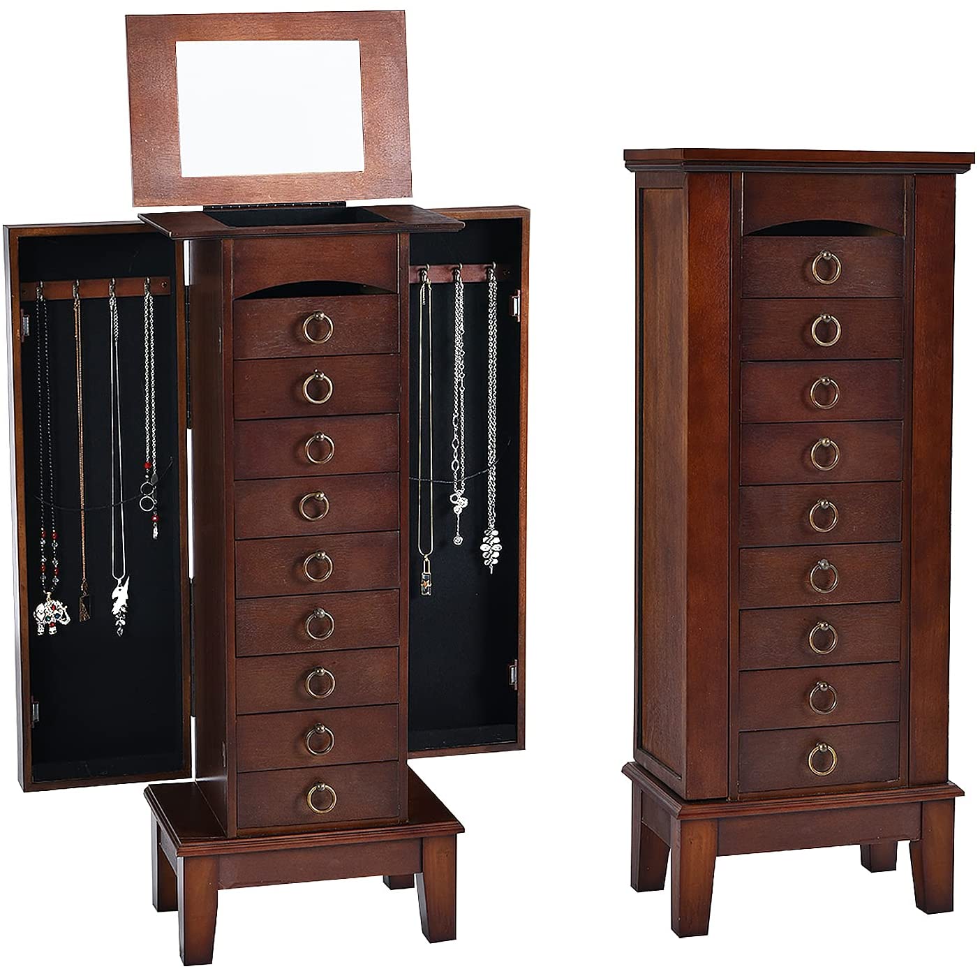 Nine Open Drawers And Two Side Doors Provide Ample Jewelry Storage Space
