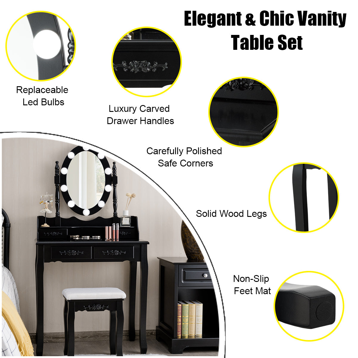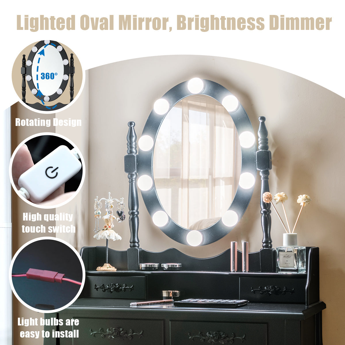 Makeup Dressing Table w/Lighted Oval Mirror and Touch Switch