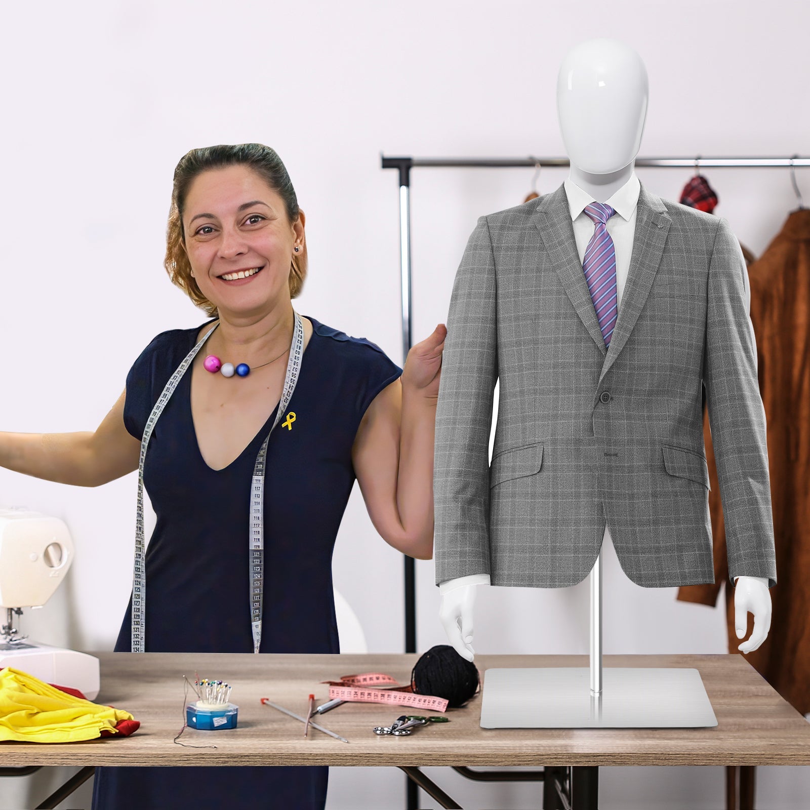 This versatile mannequin is designed with flexible components, including an adjustable body, head, and arms that rotate a full 360°. This feature makes it compatible with a variety of clothing, from casual T-shirts to formal suits, ties, and hats. The 19.5" rising height, making it suitable for both short and long garments, ensuring your display is always perfectly presented. With a Wide Application, this mannequin is at home in tailor shops, shop windows, or personal use, meeting diverse needs with its premium PP material body that's built to last. This male mannequin comes with more exquisite details, the sturdy and stable 16”?x 12”?(L x W) wide metal base provides a solid foundation, while the realistic muscle texture and lightweight body enhance the visual appeal of your clothing displays. Weighing only 12 lbs/5.5kg, this mannequin is easy to move and position, offering a practical solution for any dressing scenario.