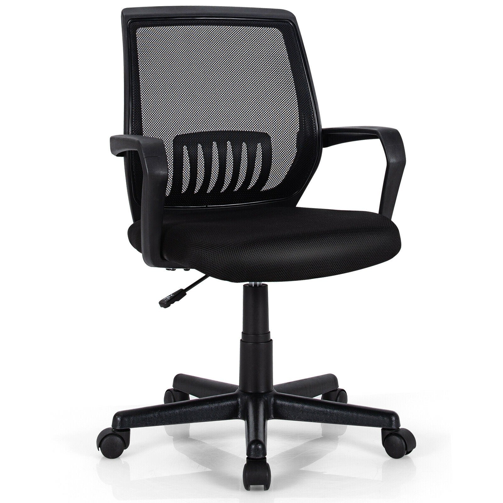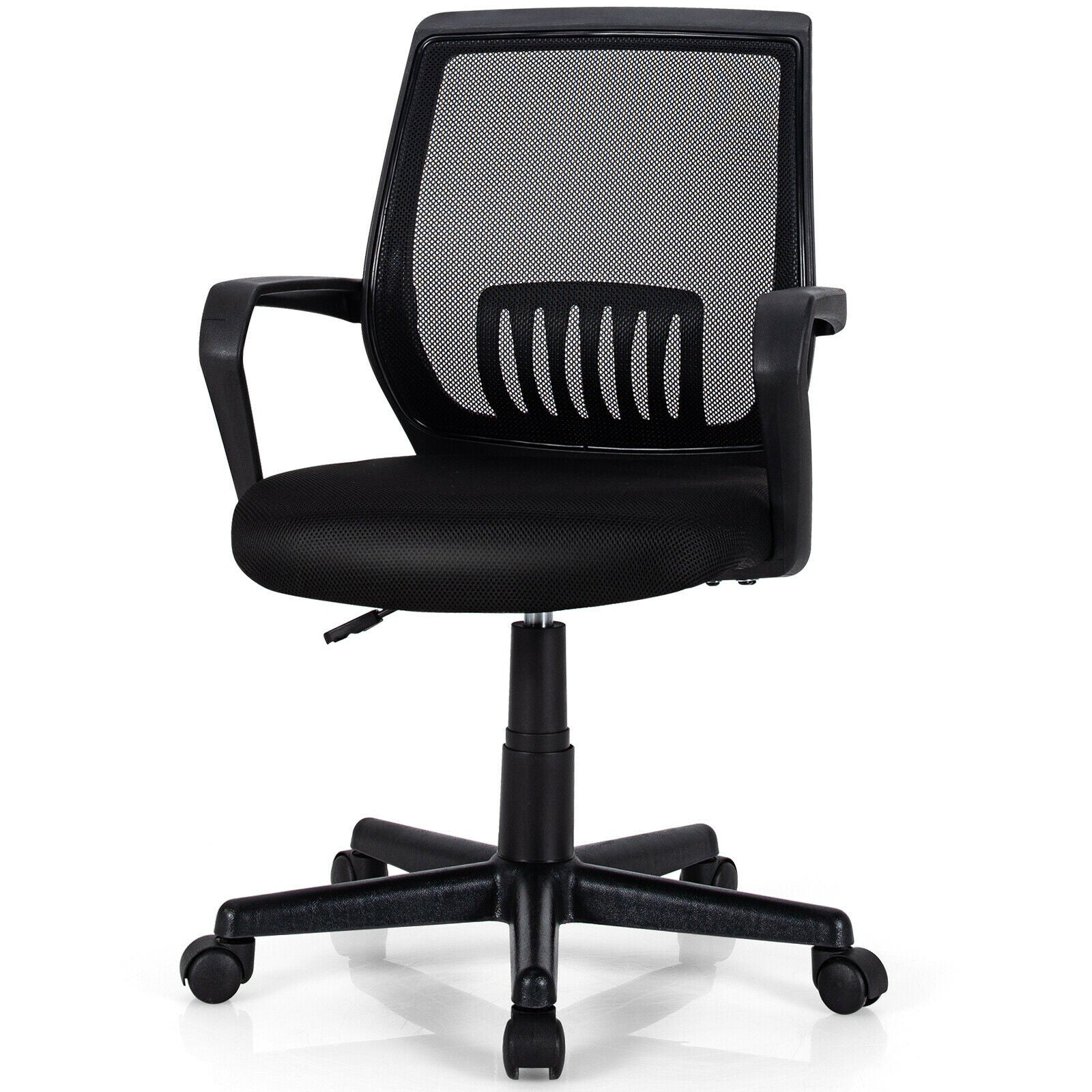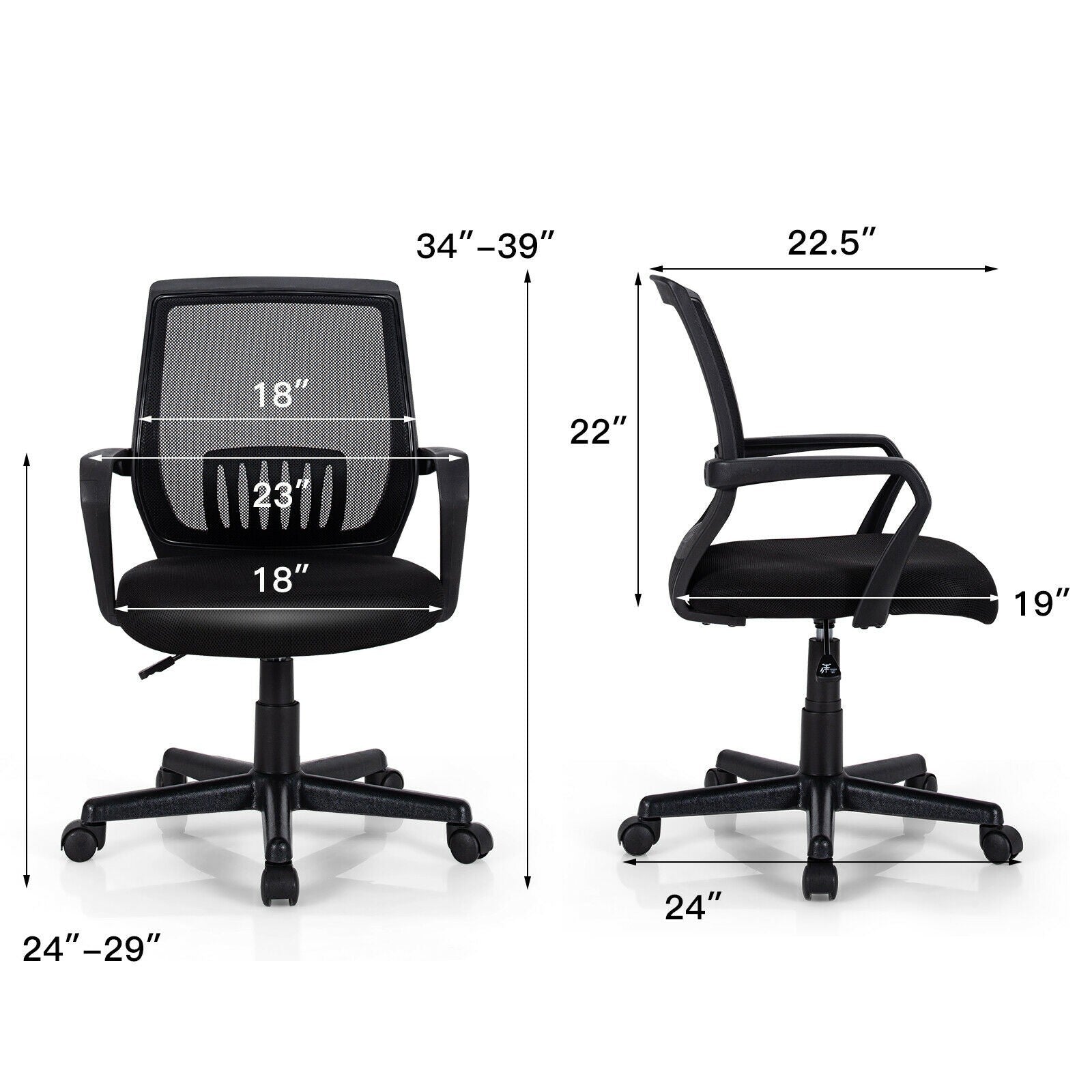 Our ergonomic home office desk chair will help you retrieve a life of ease! This mesh office chair features a mid-back design and lumbar support, fitting your spine's natural curve and supporting your back in a comfortable way. What's more, the seat is padded with thick and elastic sponge and the backrest is covered with densely knitted mesh cloth. These breathable materials will softly hold your body to keep optimal comfort as they can accelerate heat effectively. The height adjustment allows you to adjust seat height from 16.5" to 21", making the chair suitable for your stature. In view of frequent movement while sitting, this swivel chair is equipped with smooth-rolling casters which make flexible mobility in all direction.