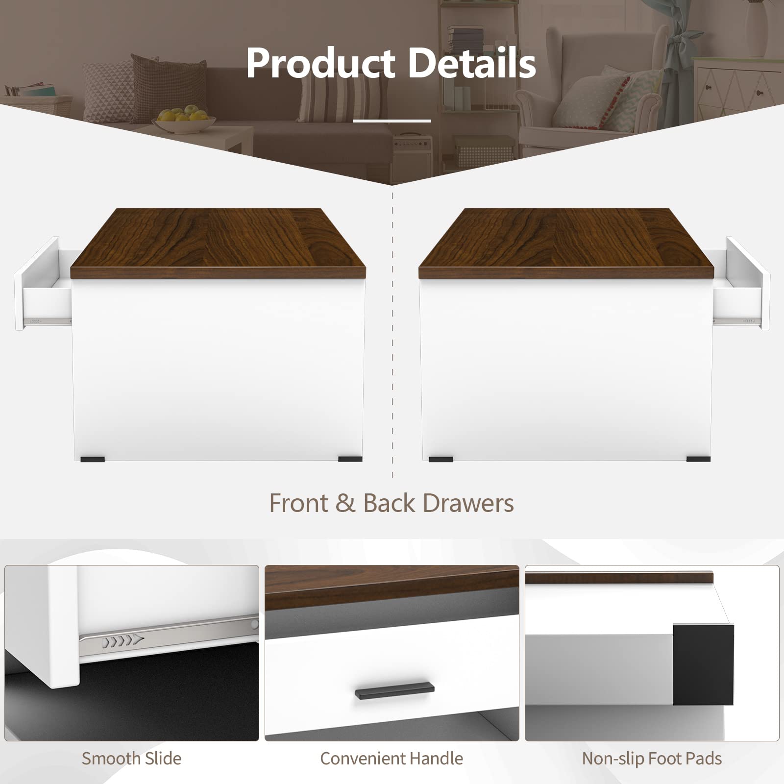 Considerate Details: Features smooth drawer slides and quiet hinges, both greatly reduce the noises of coffee table during pushing and pulling. And the surface of coffee table is excellent in water resistance and scratch resistance.