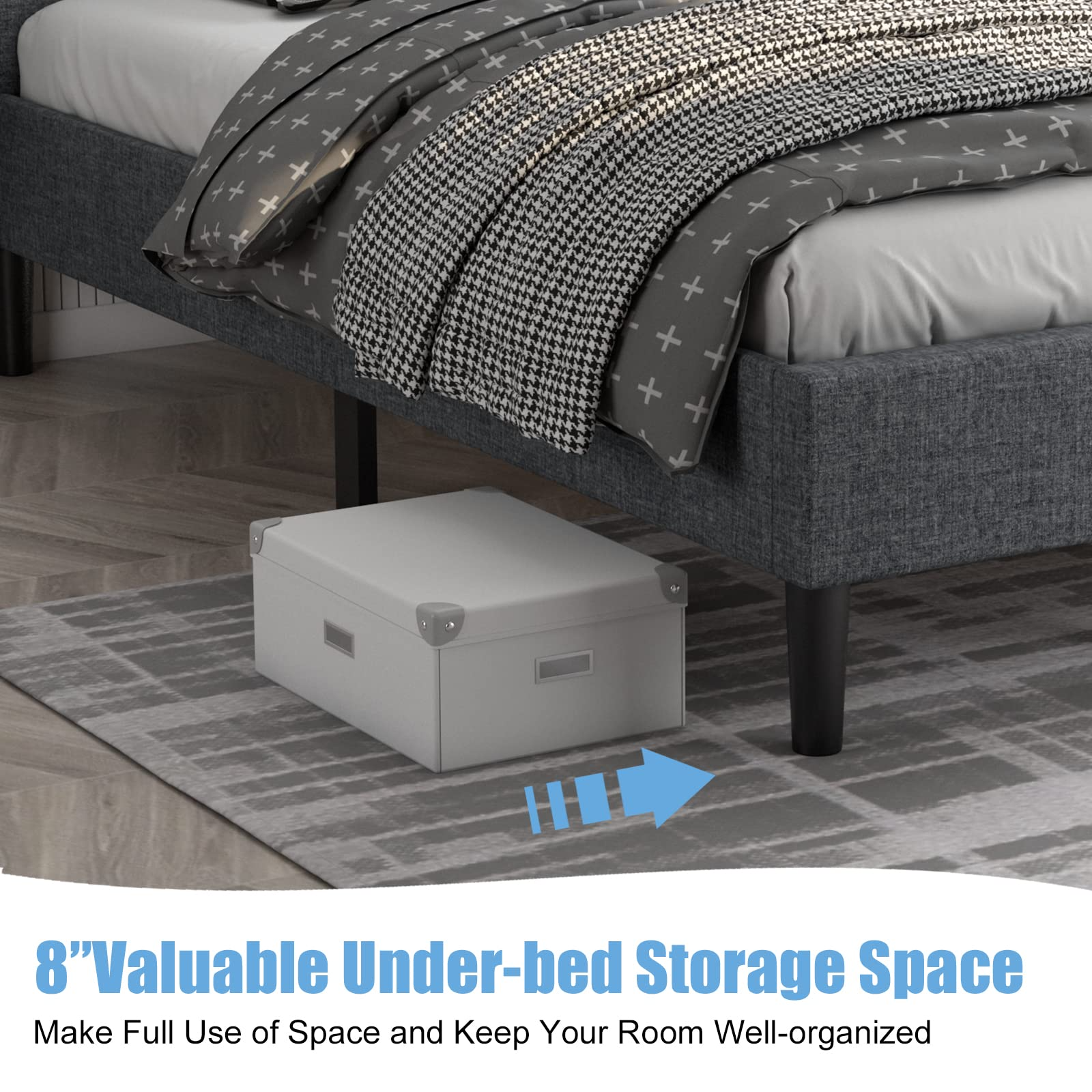 - Optimate Details for Convenience Under-bed storage space is spacious to keep your idle things in one place while giving you much convenience to clean the room. Thanks to the thick slats, the bed frame is not easy to wobble or squeak when you roll over on it. Other than that, no additional foundation or box spring needed.