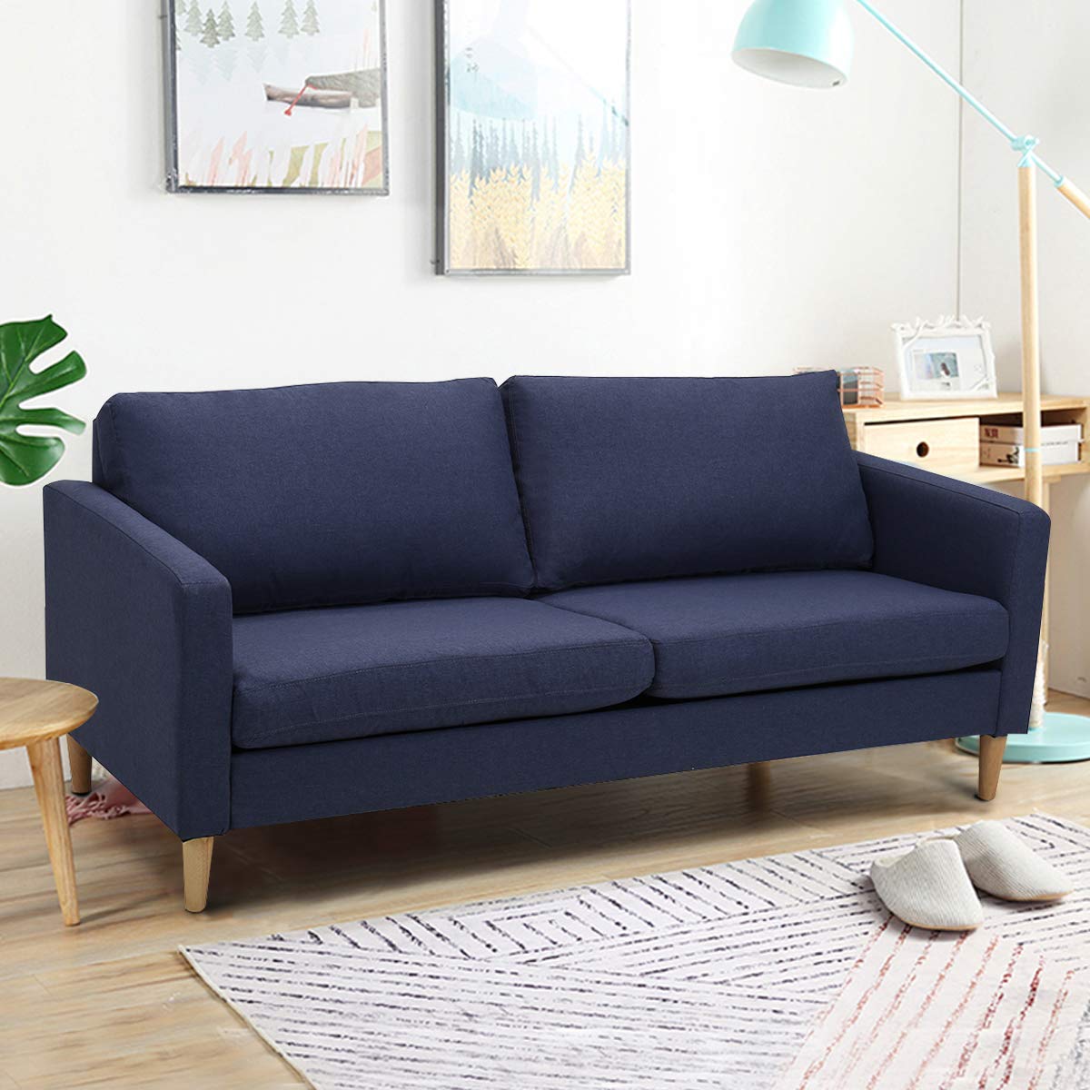 This is our brand new modern sofa which deserves to be owned by you. Made of soft fabric and a solid wood frame, the sofa is durable enough to accompany you for many years. While adding an elegant and low-key element to your home, it will also bring you a comfortable sitting feel. The seat and backrest of the sofa are well padded with a sponge to offer supportive comfort when you lean on it. It is worth mentioning that the back cover and the seat cover are detachable for easy cleaning. It will be a decorative and comfortable addition to any room and give you another space to read magazines or chat with your family to spend your free time! Don't hesitate to buy it!