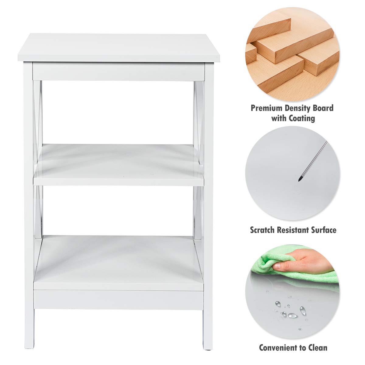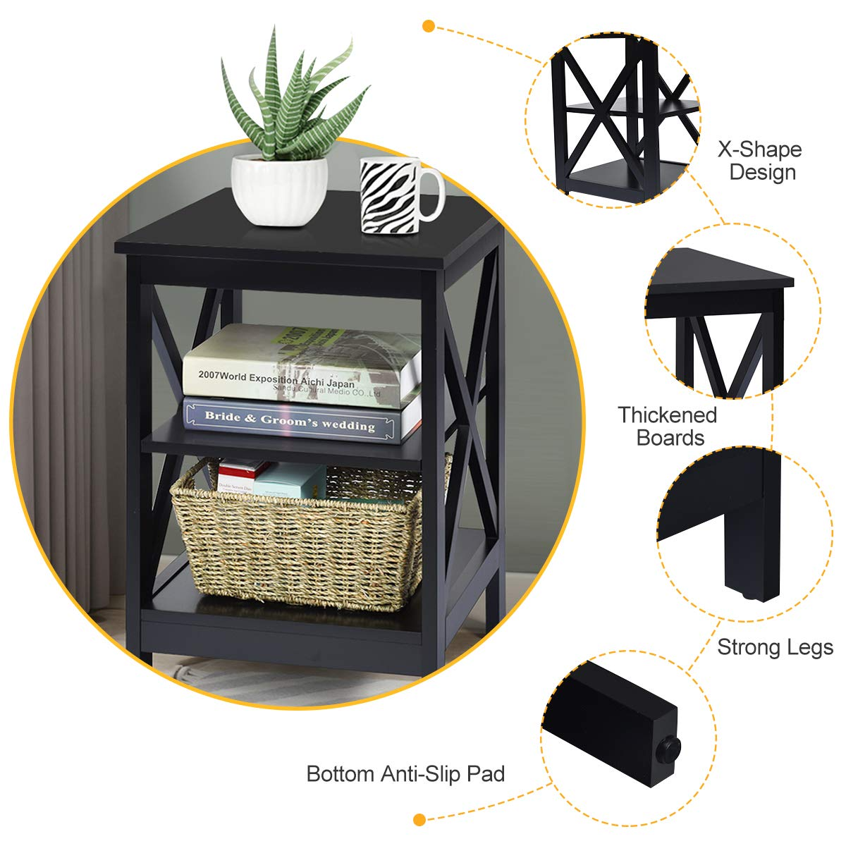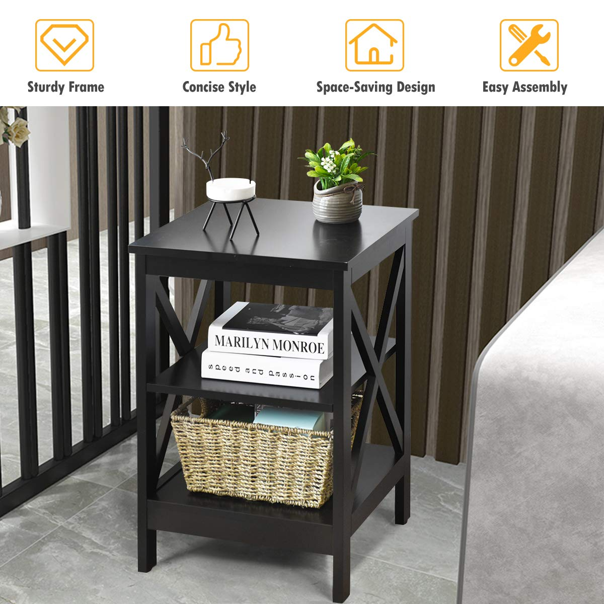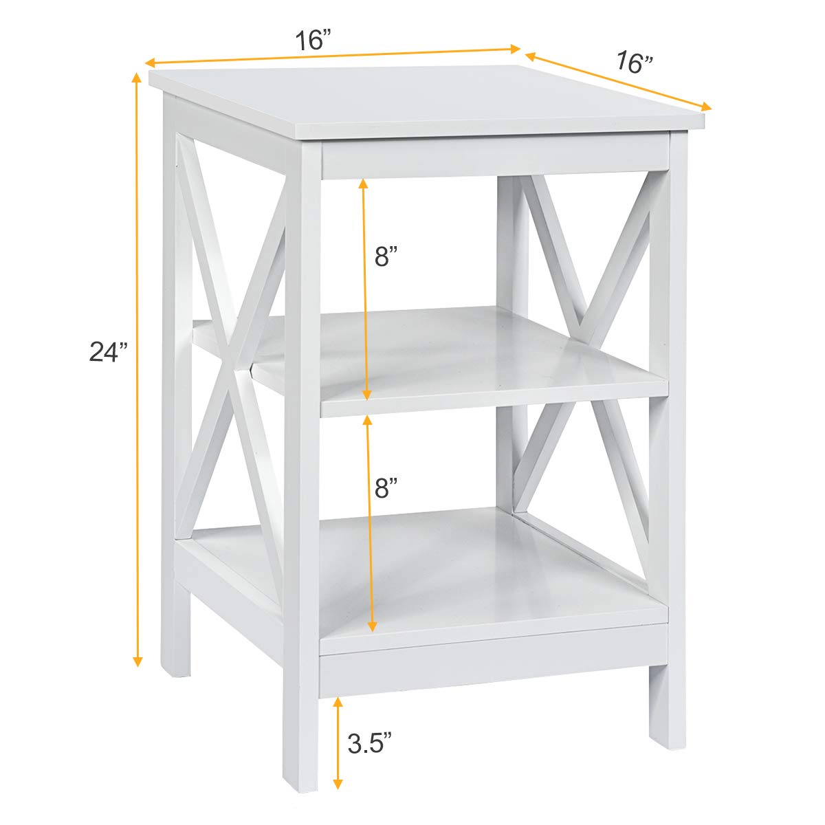 Spacious Storage Space: Comes with three tiers of storage compartment, this end table is practical and easy to organize your daily supplies. Items can be placed on the desktop or on the lower shelves according to your different needs and preference.